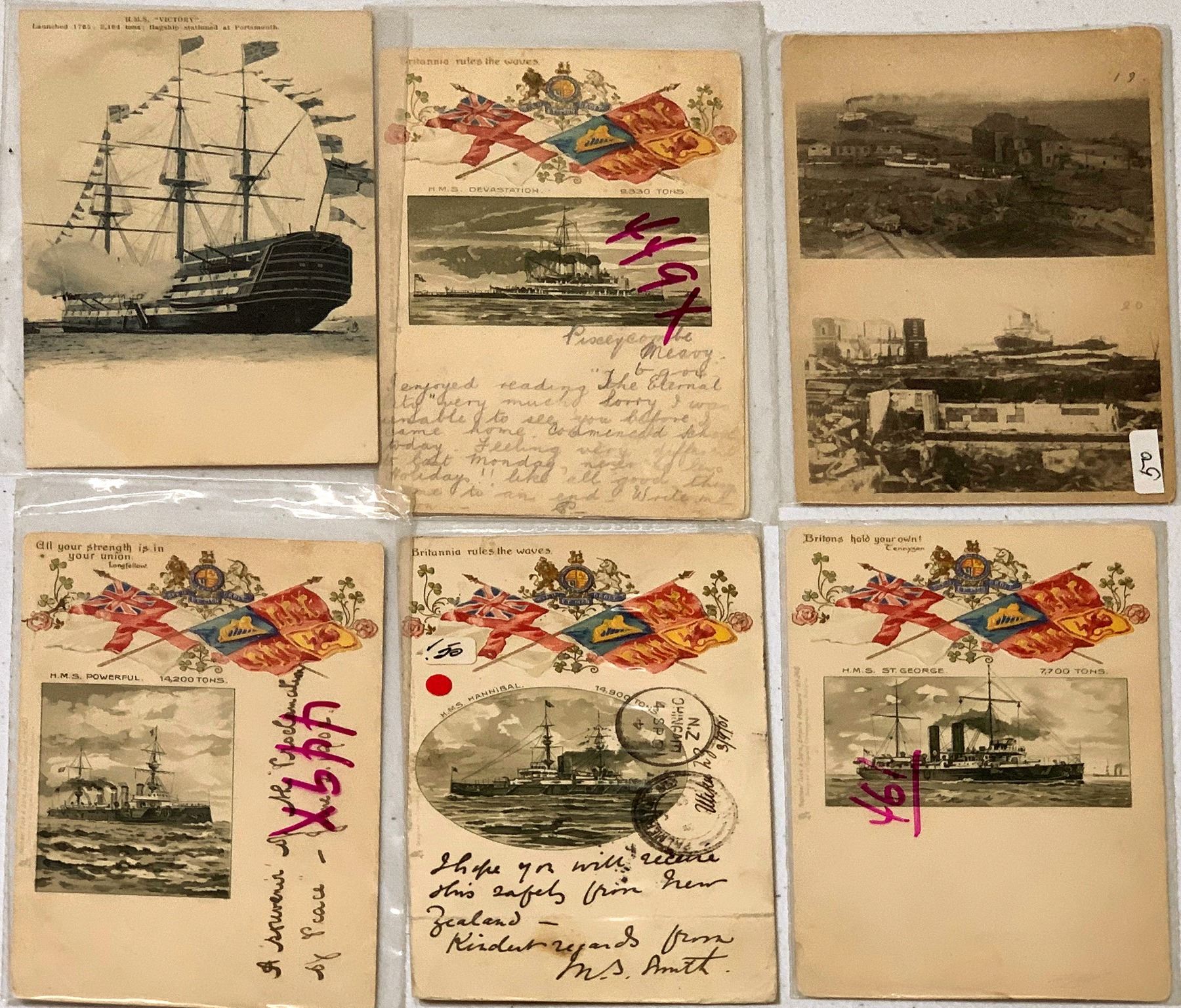 Seven Tuck postcards by Tuck of British Ships. Great subject matter.