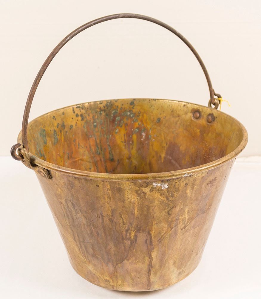 This beautiful authentic antique bucket is embossed with the name "E. Miller and Co. Meriden, Conn. Pat. Aug. 11, 1868 Pat. April 27, 1869 Pat. Mar. 15, 1870". This is in wonderful condition for it's age and is excellent piece of historic Americana. It has wrought-iron loop handle and riveted fasteners. Very beautiful. Date: Location: Meriden, Connecticut HWAC # 55324