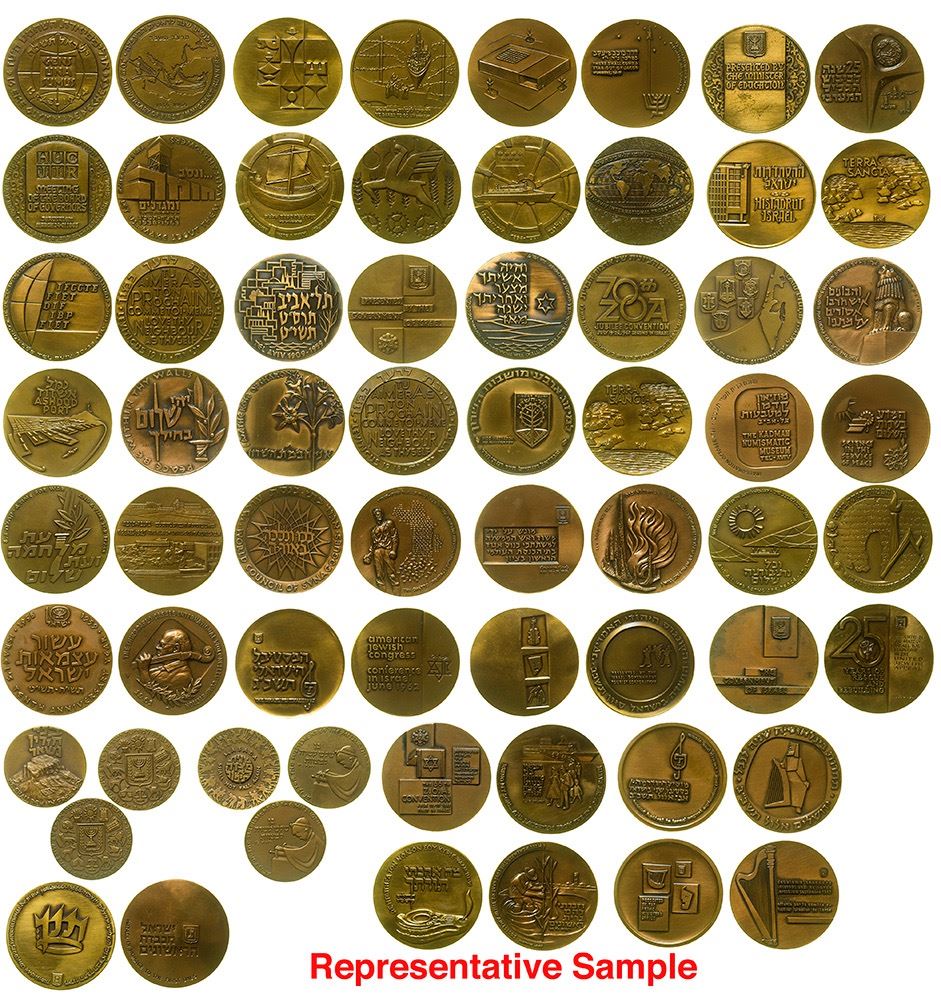 Thirty three bronze Israeli medals. United Jewish Appeal 25th Anniversary, Second International Harp Contest (1962), Shavit Medal, many more. Date: Location: zIsrael HWAC# 48912