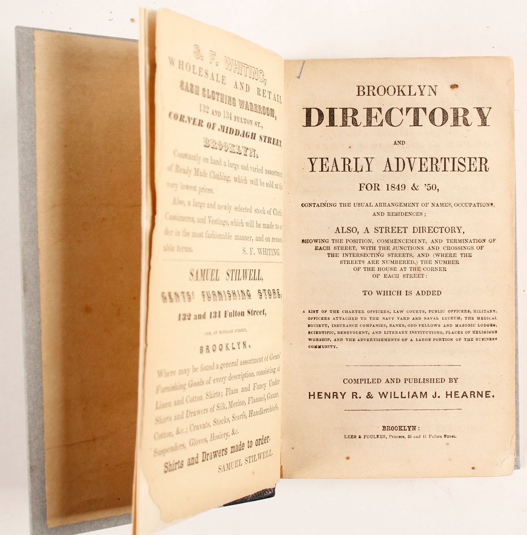 The Brooklyn Directory and Yearly Advertiser for 1849 & 50, published by Henry R. and William J. Hearne, Brooklyn.