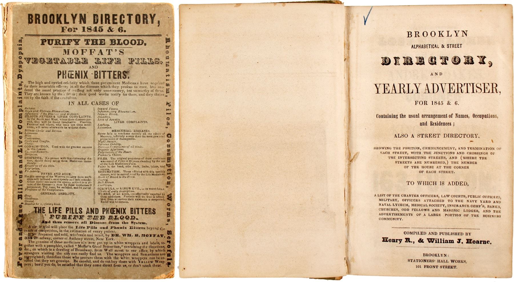 Brooklyn Directory for 1845 & 6, compiled and published by Henry and William Hearne, Brooklyn_x000D_