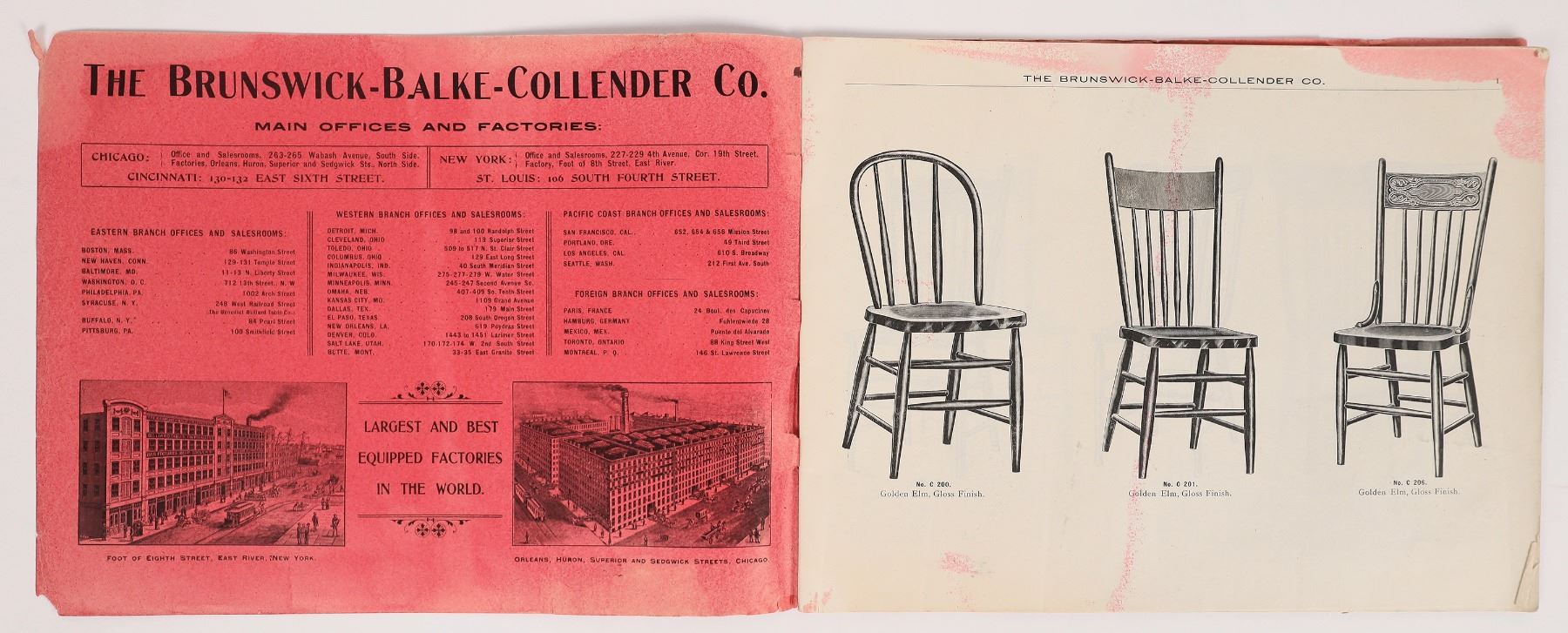 Rare Brunswick-Balke-Collendor Co. special chair catalog, undated. This is the predecessor company to Brunswick Billiards. Lots of chair illustrations. 64pp. 9.5x12.25". Some cover wear.
