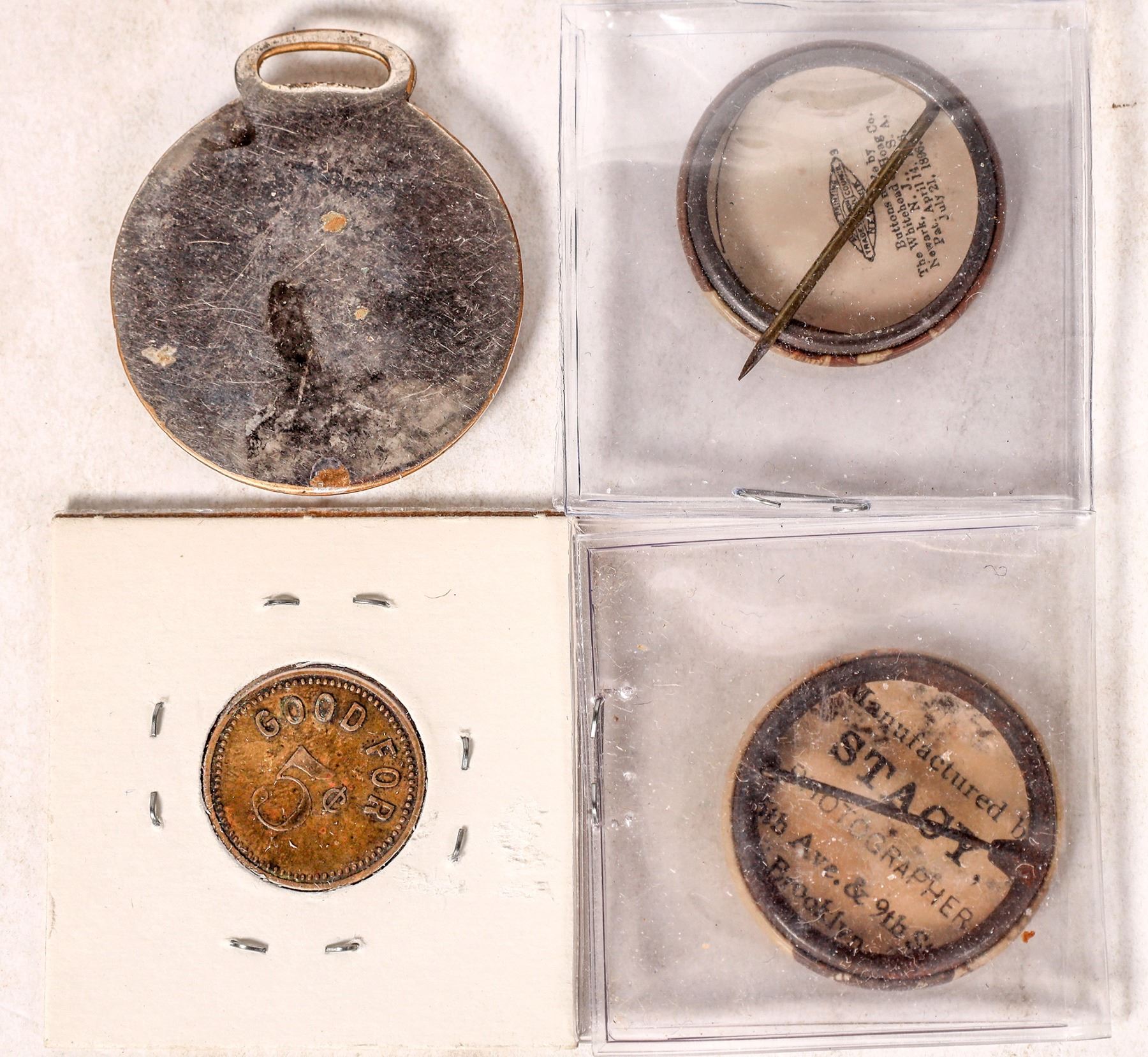 Pinbacks ( measure 1.5") for both western showmen, Pawnee Bill and Buffalo Bill Cody. There is also a relief medallion with the profiles of both that measures 1.75". Lastly, is a Pawnee Bill Good For five (5) cent token These are all in great condition. Please see photos for more details.