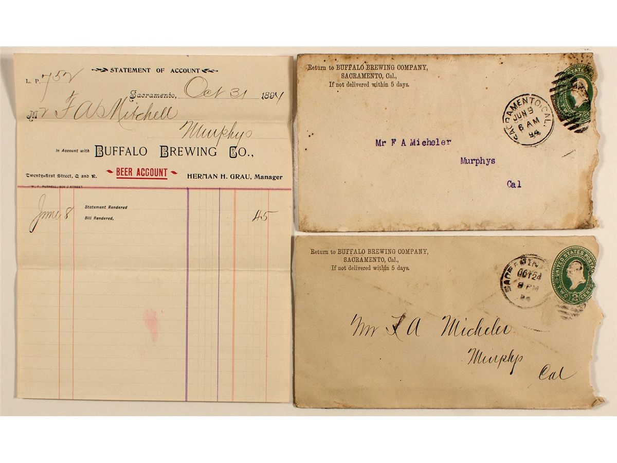 Two corner advertising covers and one billhead. All are addressed to Frank Mitchler of Murphy's.City: SacramentoCounty: SacramentoState: CADate: