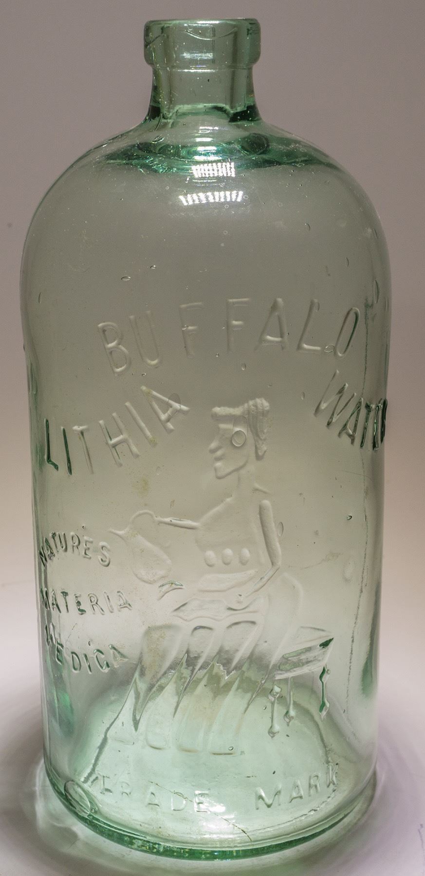 Buffalo Lithia Water, green, Natures materia medica. Approx 4.5 x 10 inches. No apparent cracks or chips. State: City: HWAC#: 48519 Date: