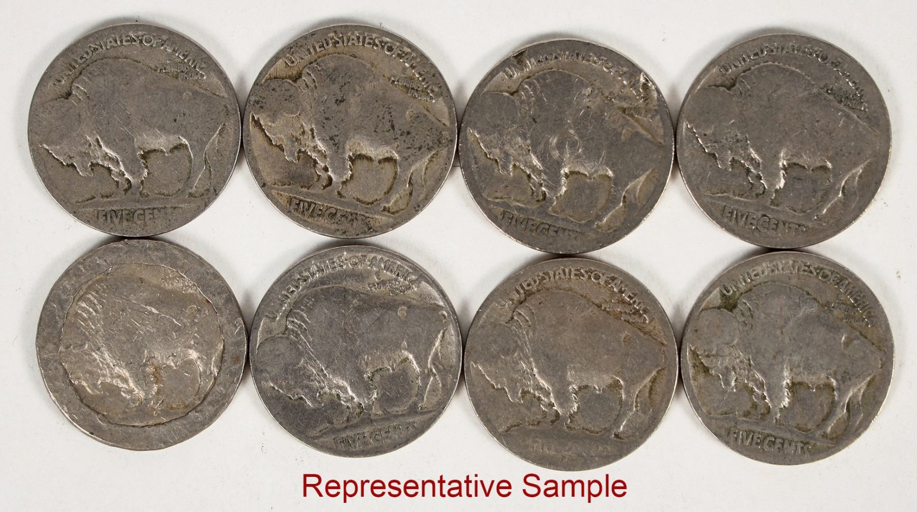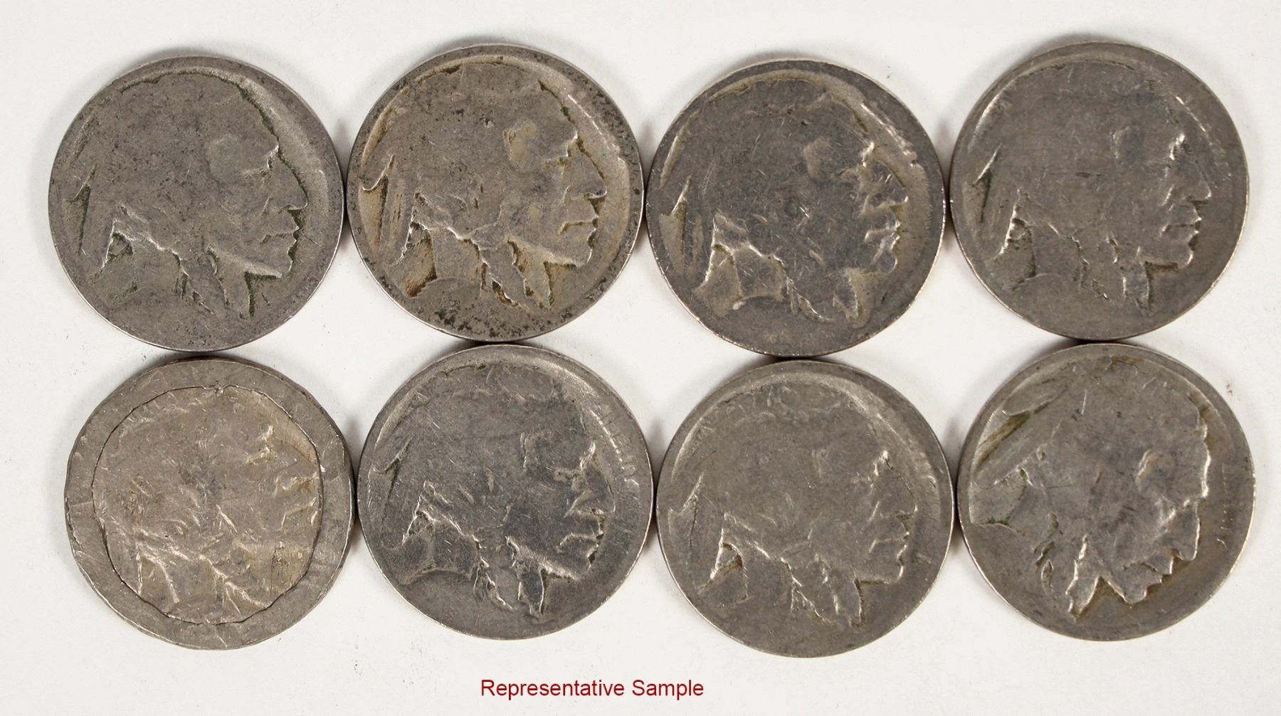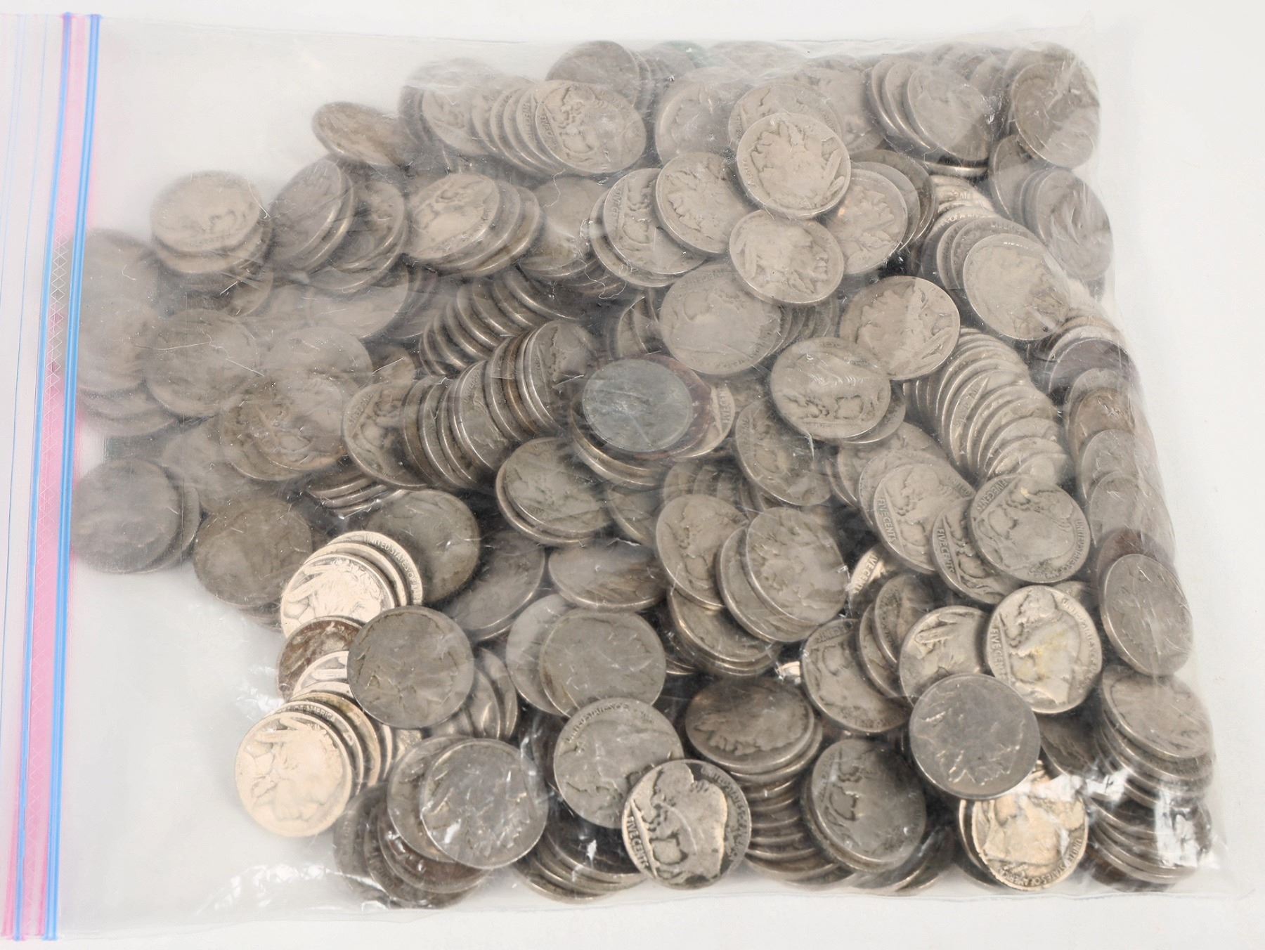 Large bag of 465 Buffalo nickels. Mostly dateless, but a couple can be read.