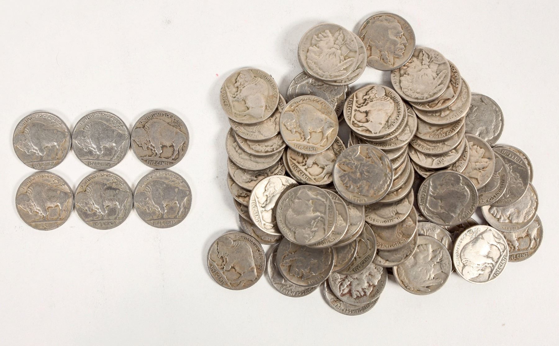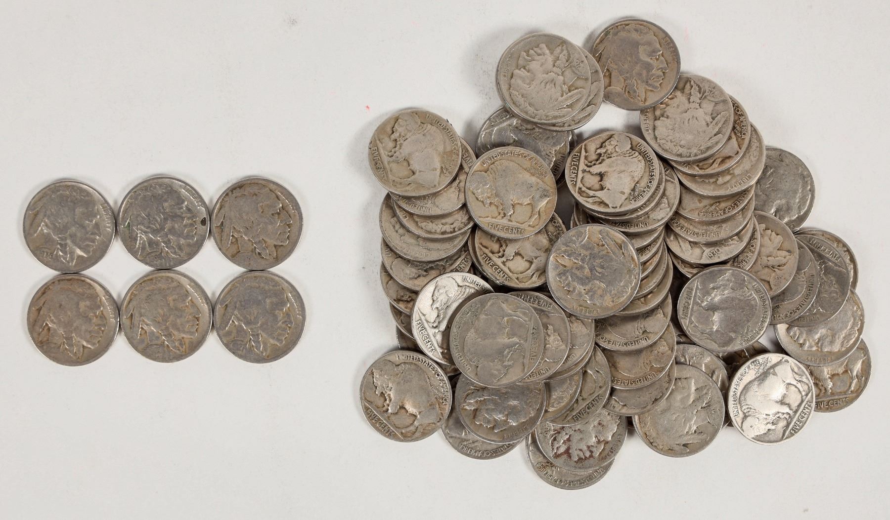 Seventy five Buffalo nickels dated 1930 or older. Some with partial dates, most VF-F condition.