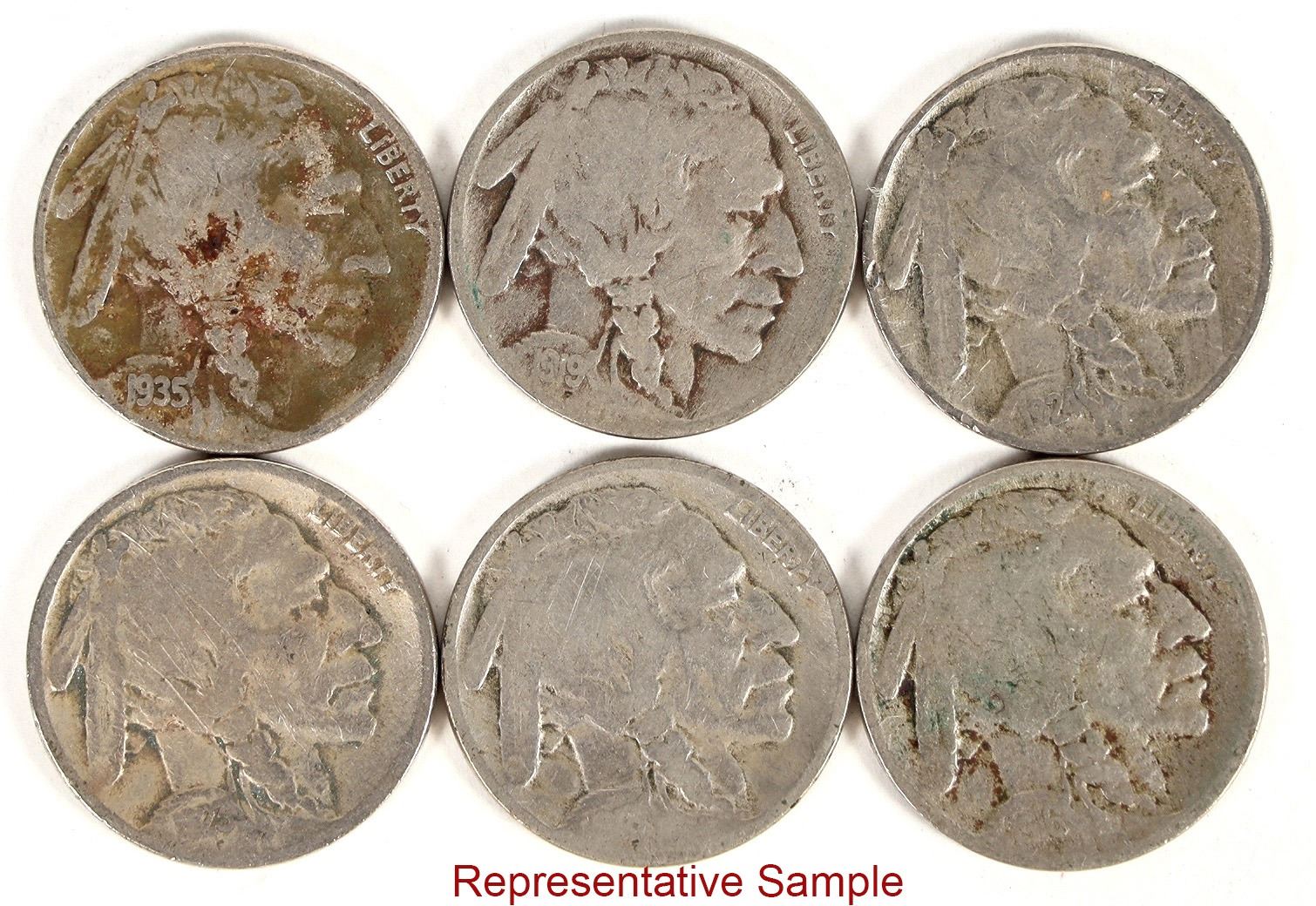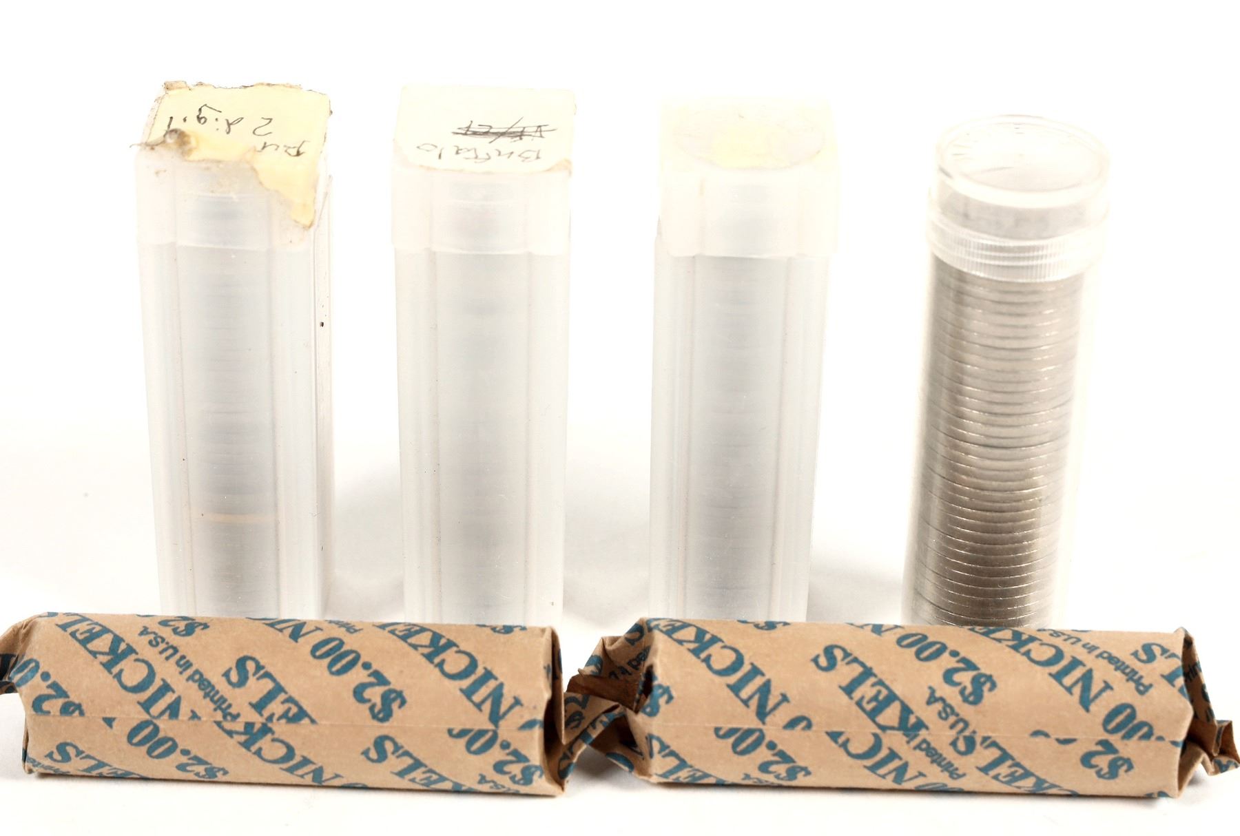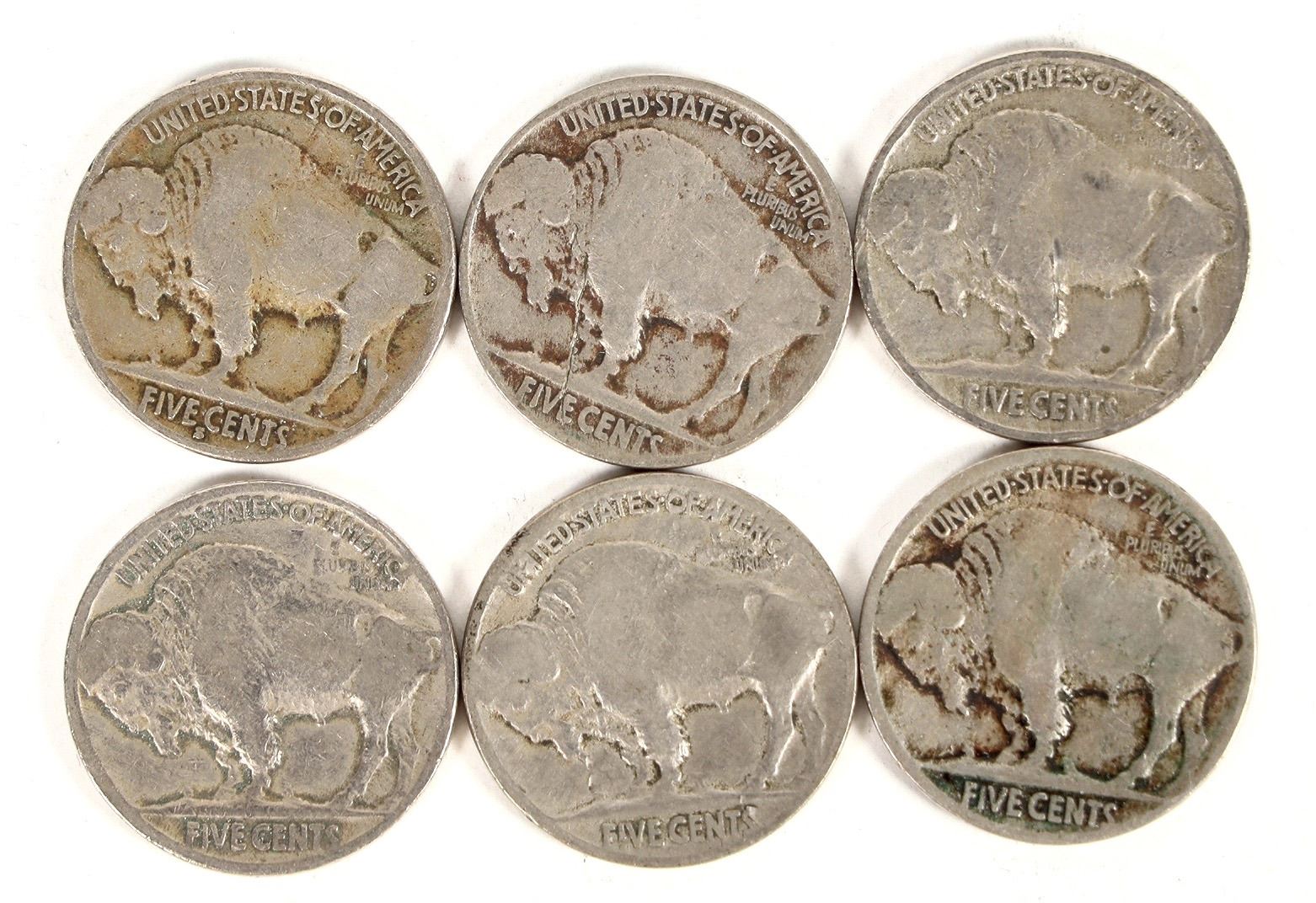 Six rolls of Buffalo nickels. Five of the rolls are good to fine condition. The sixth roll is labeled "2 digit" and dates are partially readable.