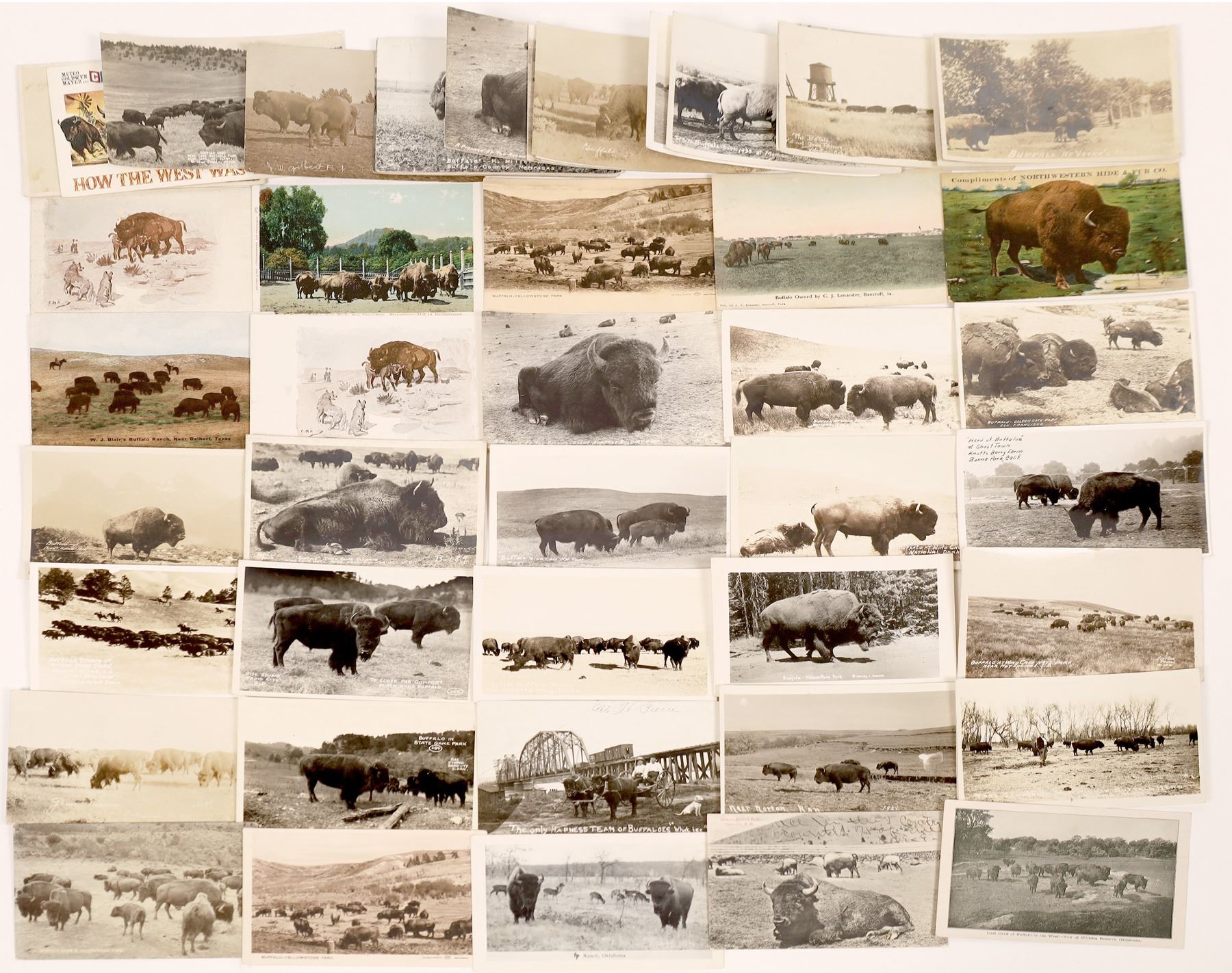 Lot of 49. Images of buffalo (American Bison) grazing on a ranch in Iowa to the Golden Gate Park in San Francisco: Collection includes four undivided back cards (c. 1901 - 1907), one being the Golden Gate Park scene. The rest of the collection consists of three vintage chromolithos, over 40 B&W photos (mostly RPCs), and three modern era cards.