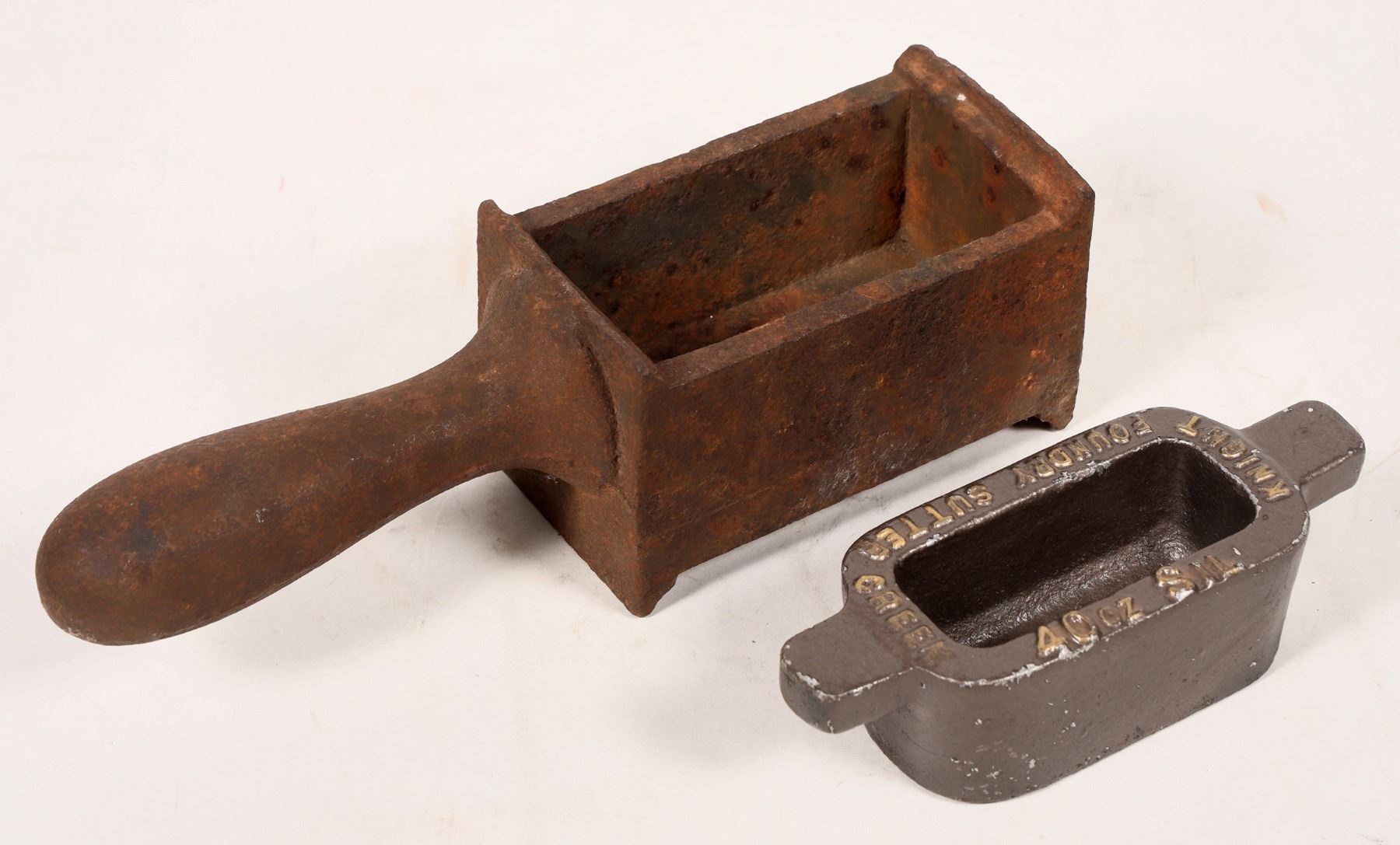 A couple of bullion molds. One is marked Knight Foundry Sutter Creek 40 OZ. Sil. It measures 3"x 7"x 2". The other has no markings. It measures 12"x 3.5"x 3" . Please see photos for more details.