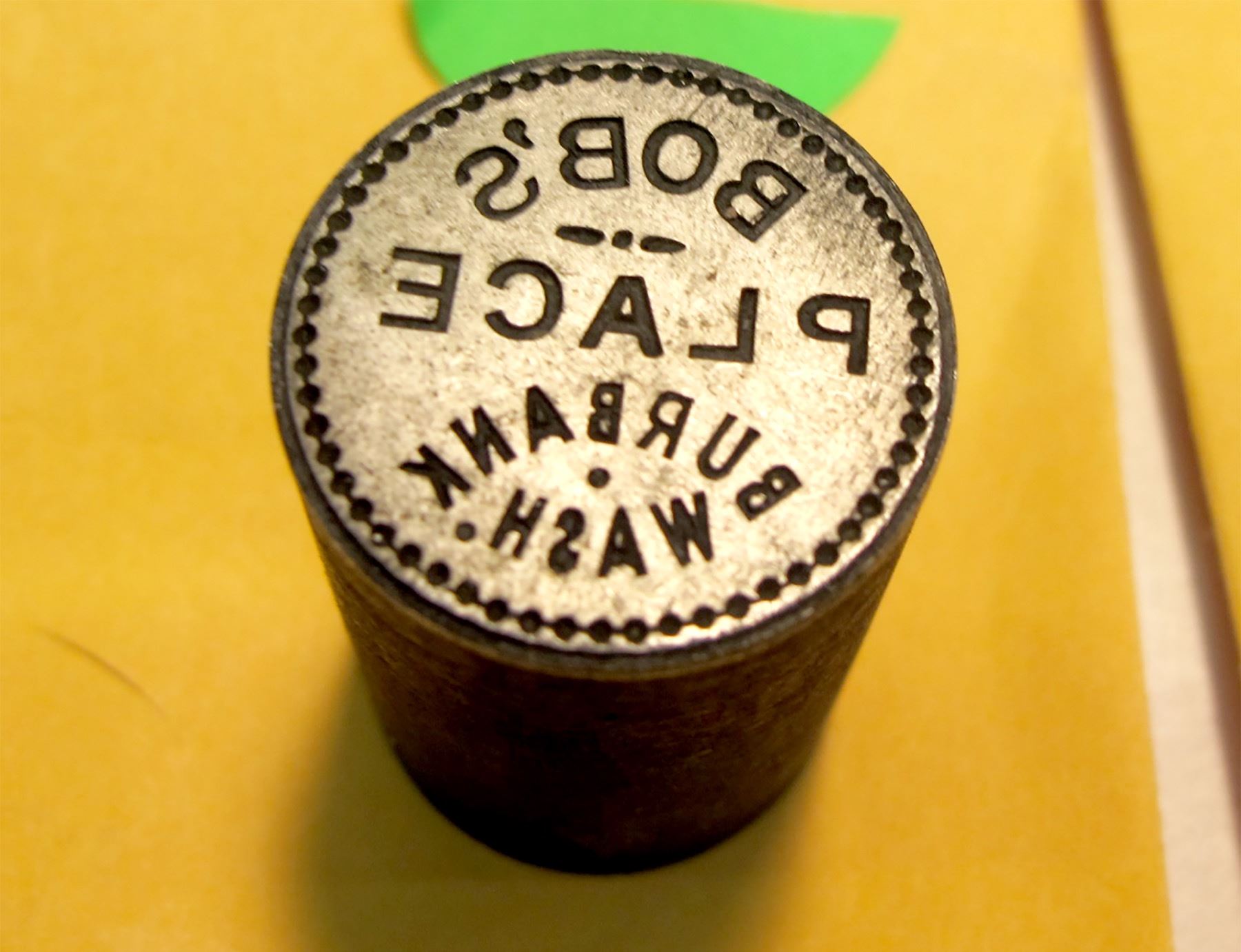 Lot of 1 Die. Self-identified from Burbank Washington. 22 mm: Bob's Place. Northwest Territorial Historical Die Collection. State: Washington City: Burbank Date: c1903-1950 HWAC# 84461