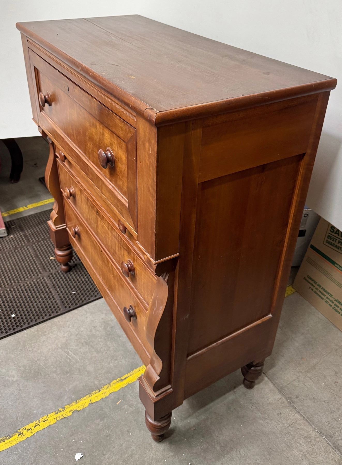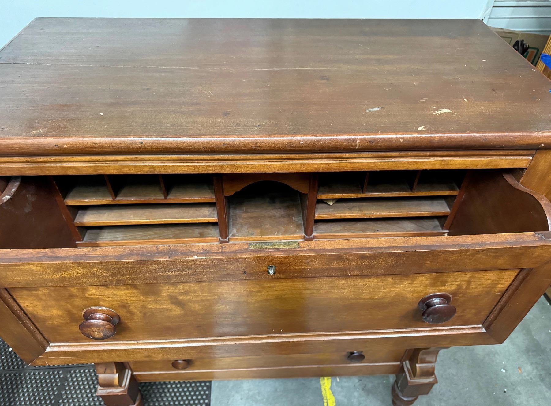 Very attractive Bureau style desk with fall front and 3 drawers underneath the fall front (per EG Miller, 1937). Often called "plantation" style by some. 51" tall, 22" deep, 45" long. Generally fine. See photographs. Probably mid-19th century, unknown maker, possibly American. Choose your shipper. Approx. 100-150 pounds.