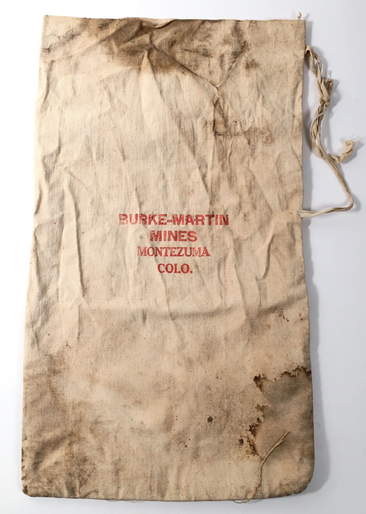 Cloth Burke-Martin Mine ore bag. 24x14". Staining.