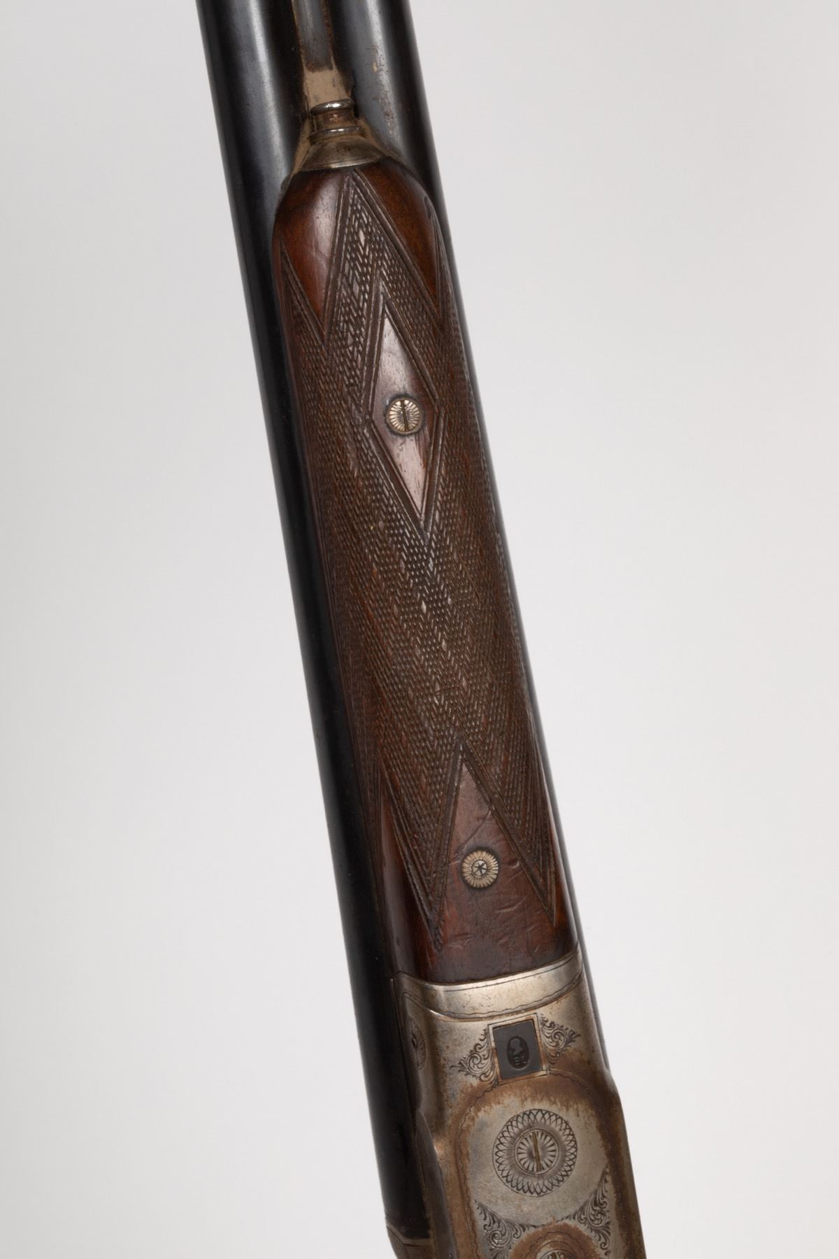 Shotgun, Burn Latridge, SxS, 16 Ga, no sights. engraved, checkered fore/pistol grip, sling swivels, rubber butt plate. SN: 12570, JMD Oval Tag: 7599, Condition: Fair, >> FFL IS REQUIRED <<