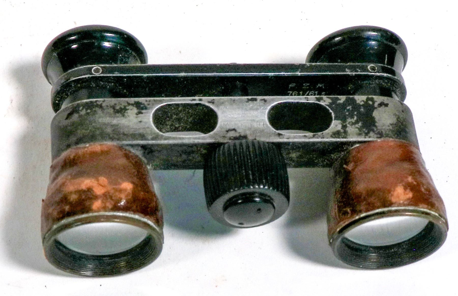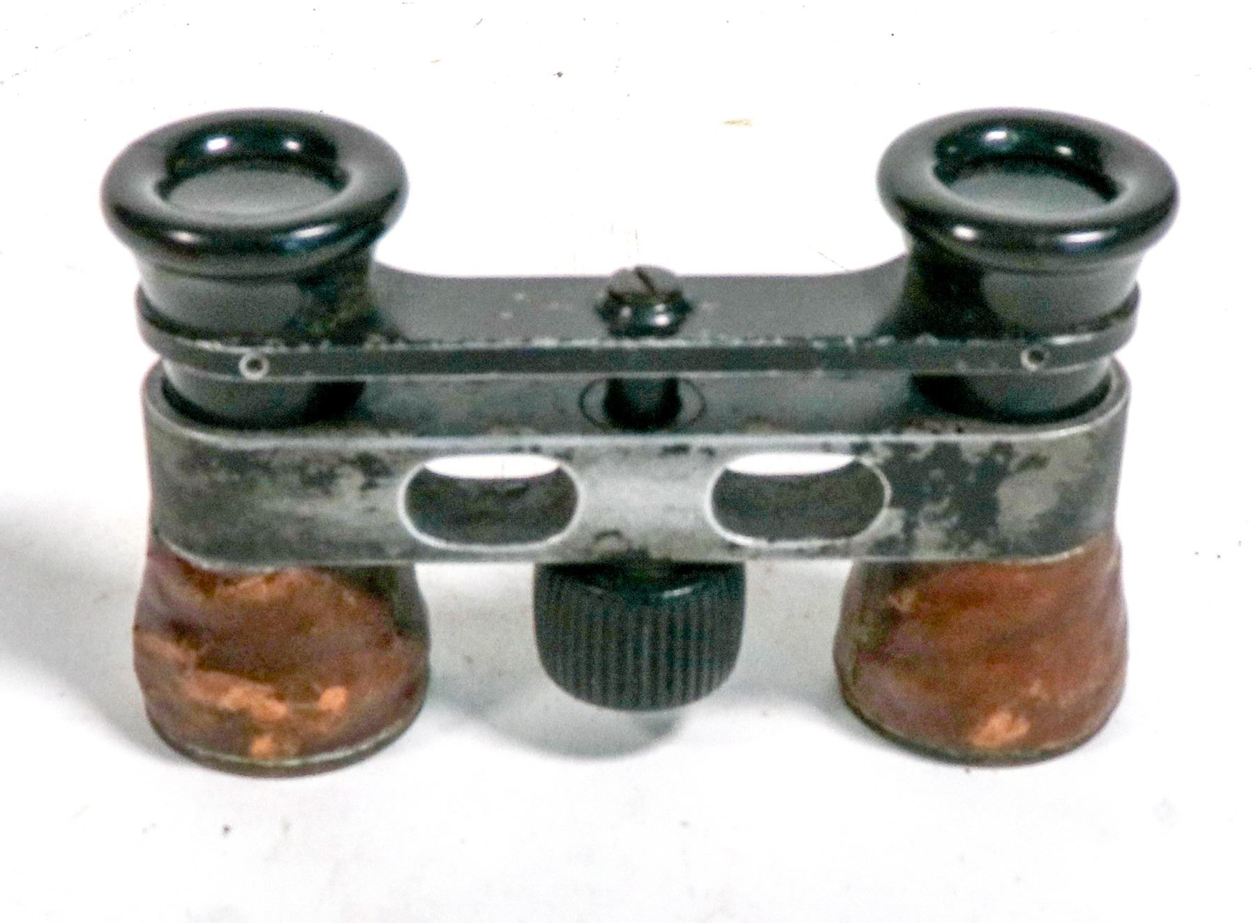 This is a beautiful pair of opera glasses made by Busch. In very good condition about X4 power, model Multinett DRGM. Black enamel finish in good working order.