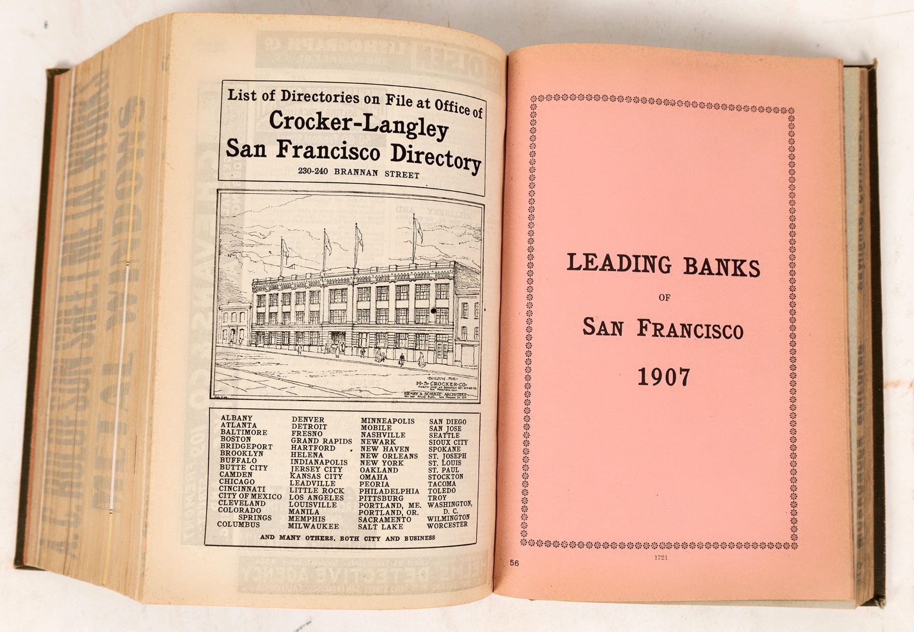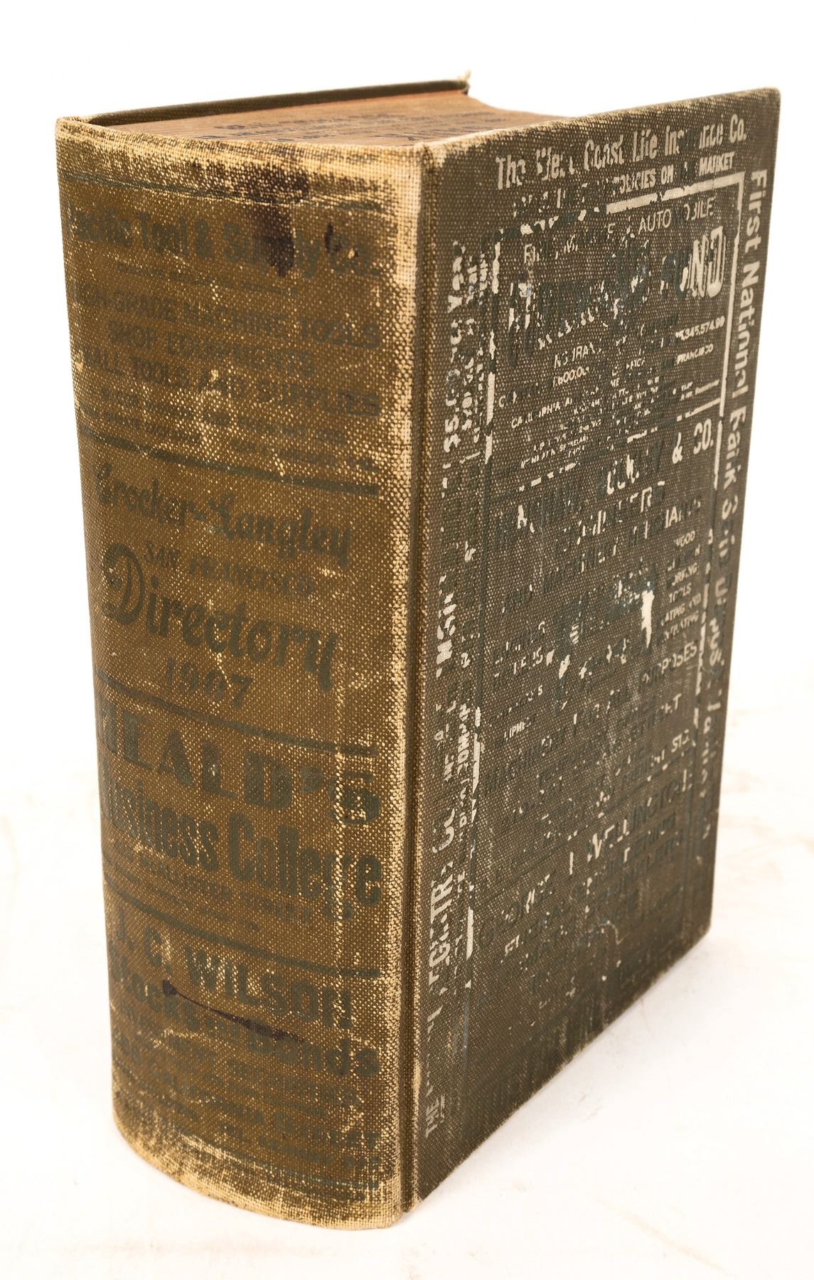 A business directory of San Francisco from 1907. This is an important business guide, coming only a year after the earthquake and fire. Hardcover is absent some of the embossing and spine shows some weakness. A nice addition to any historical book collection. California San Francisco 1907