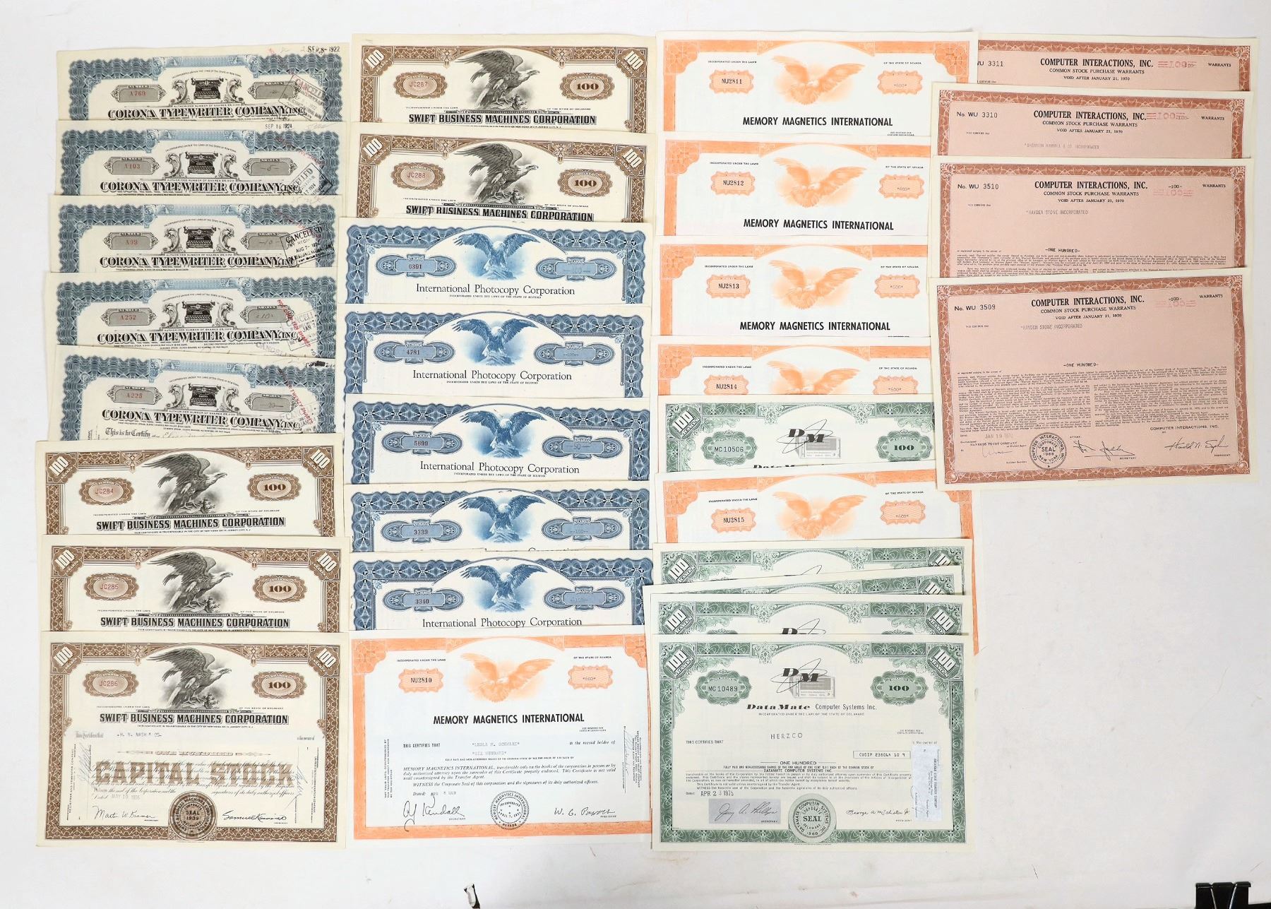 Issued, 5 each. 1969-70 Computer Interactions, 1974-76 Data Mate, 1969 Memory Magnetics, 1961-62 Intl. Photocopy, 1955 Swift Business Machines, 1920-22 Corona Typewriter.