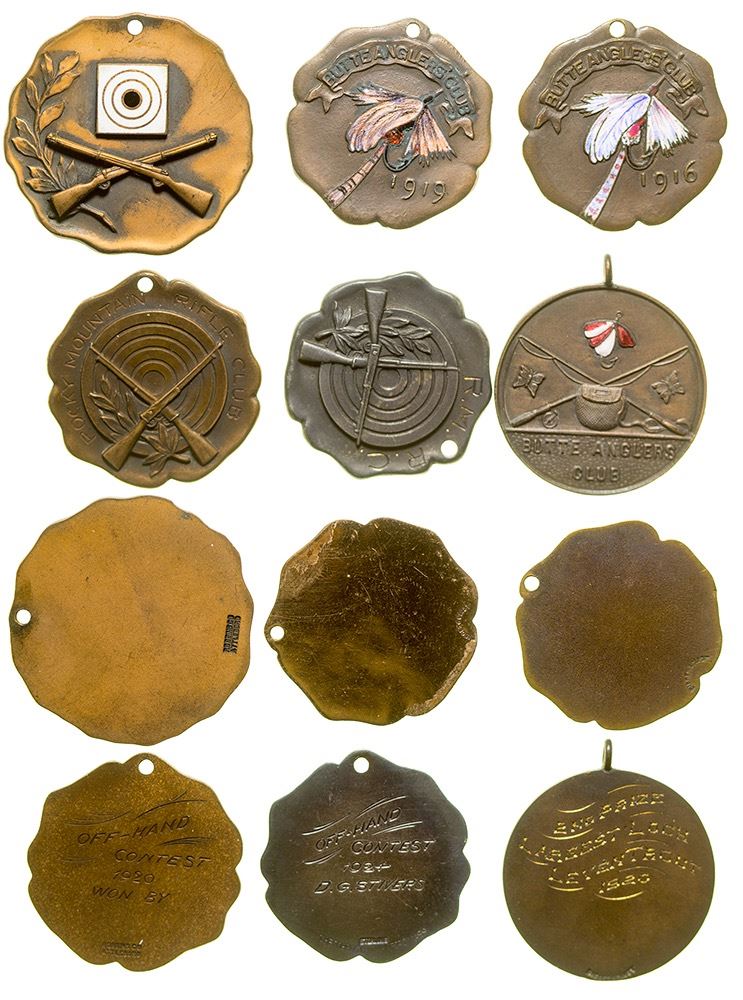Six fobs. 3 Rocky Mountain Rifle Club, 3 Butte Anglers Club. (Svoboda Collection) City: Butte State: Montana Date: HWAC# 35960