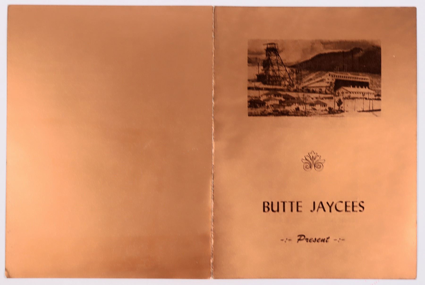 c. 1953 Butte, MT Jaycees copper leaf cover booklet with mine site on cover. 6x4.5" Montana Butte