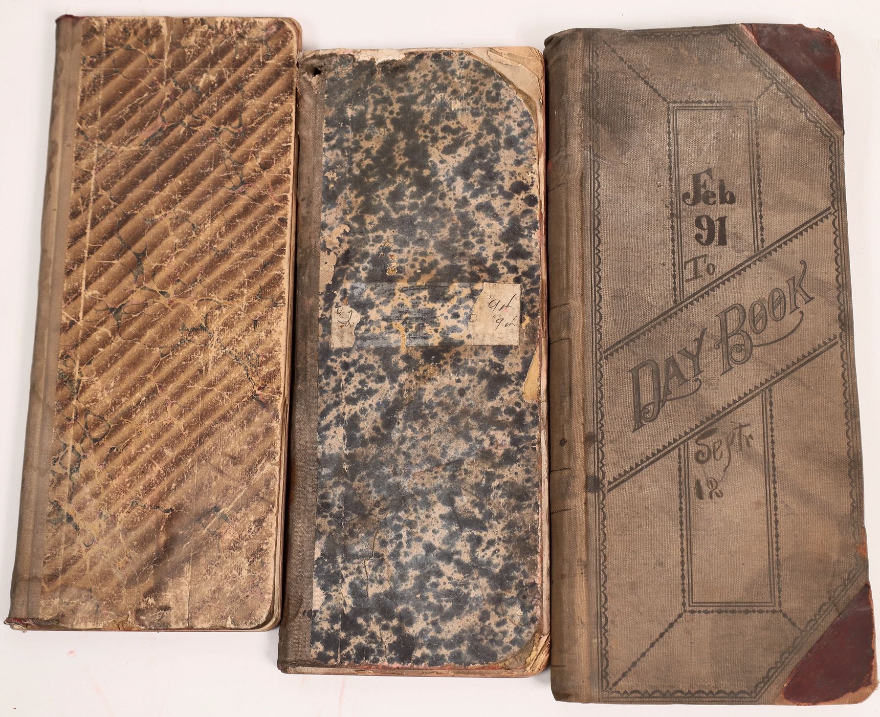 A): Babcock and Co. Day Book from Butte, Montana. The ledger contains information about transactions with general merchandise, goods, and clothing. Some items that were bought and sold that are indicated in this book are forks, hats, rain coats, and eggs. 1891-1892. Good condition. 15.5 x 7 inches.