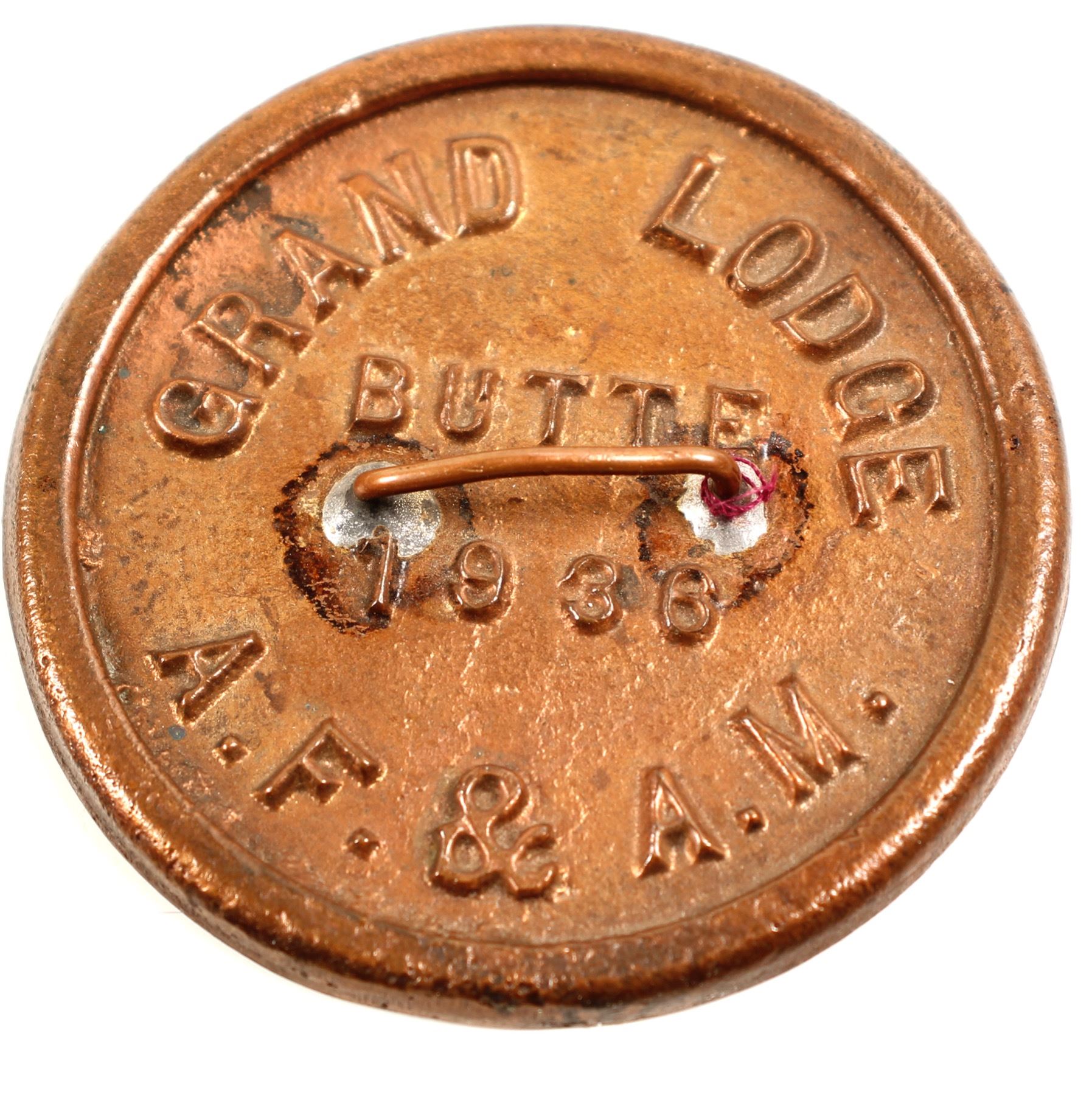 35mm brass North Butte Mining Co. check. 25mm round aluminum Centennial Beer Hall and 25mm octagon aluminum, unlisted. 75mm copper like Grand Lodge 1936 with solder front hook. State: Montana City: Butte Date: HWAC# 86404