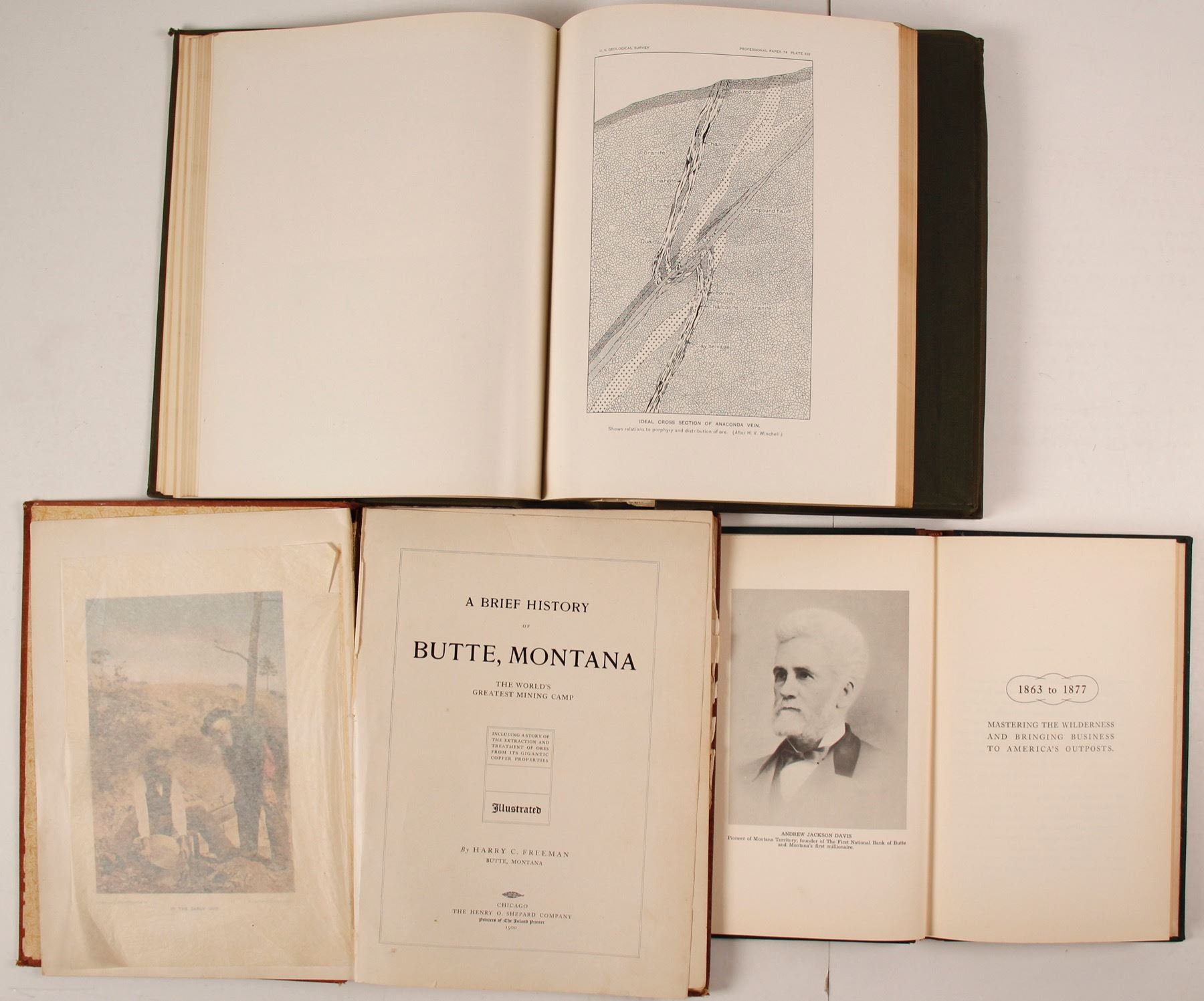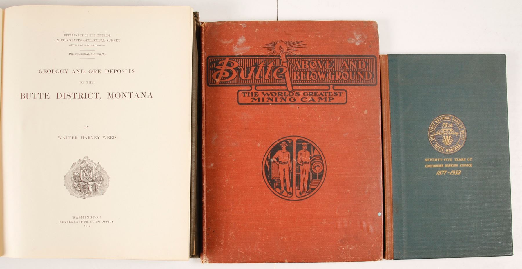 First National Bank of Butte 1877-1852. Butte Above and Below Ground, The World's Greatest Mining Camp 1900 by Freeman-cover is worn, spine detaching. Geology and Ore Deposits of Butte District Montana by Weed. State: Montana City: Date: HWAC# 81515