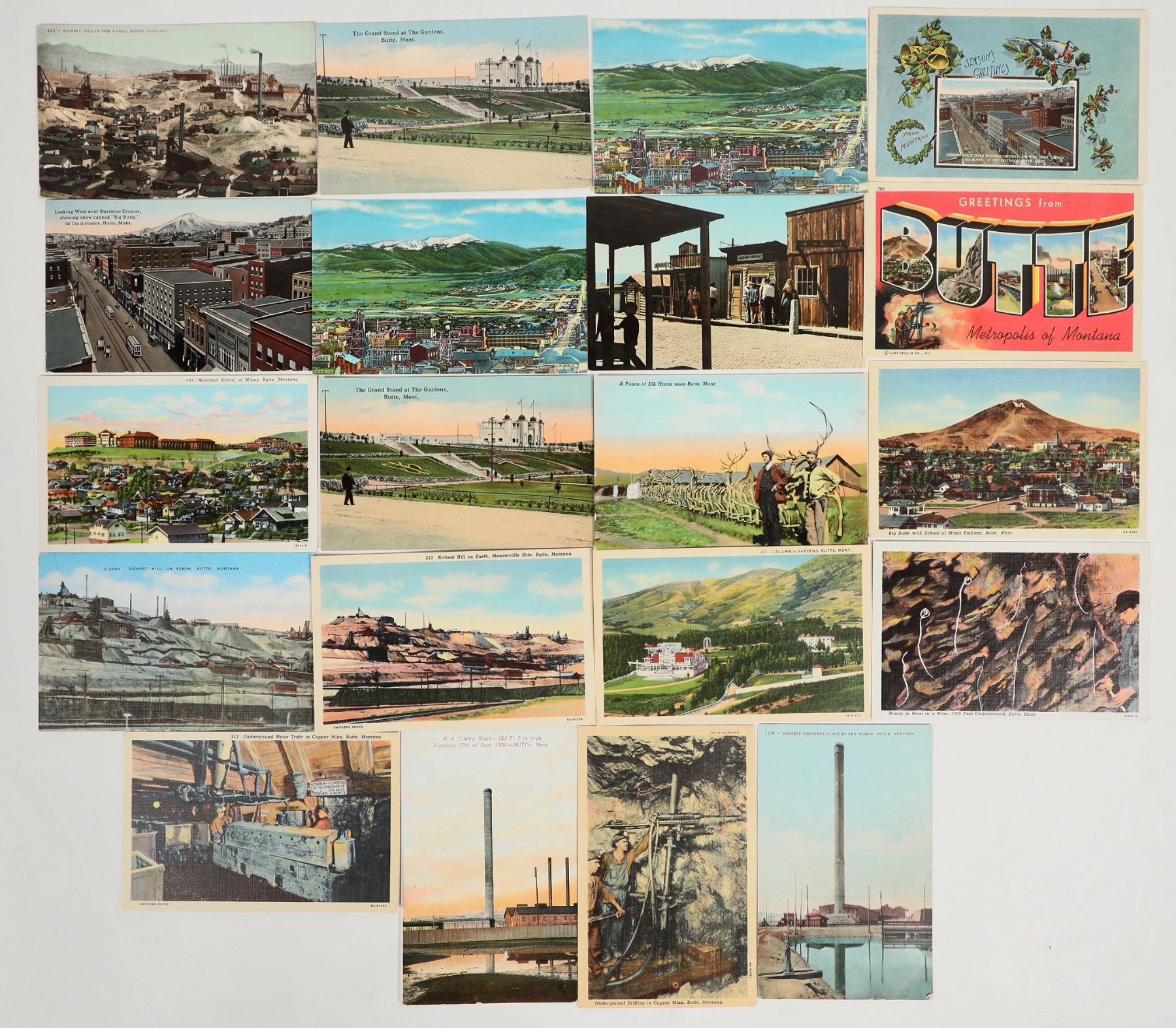 Group of 19 postcards from Butte, Montana, dating c. 1908-1930. Lot features photographic and illustrated views of the city, its industry, and the surrounding rural area. 4 used. See photos.