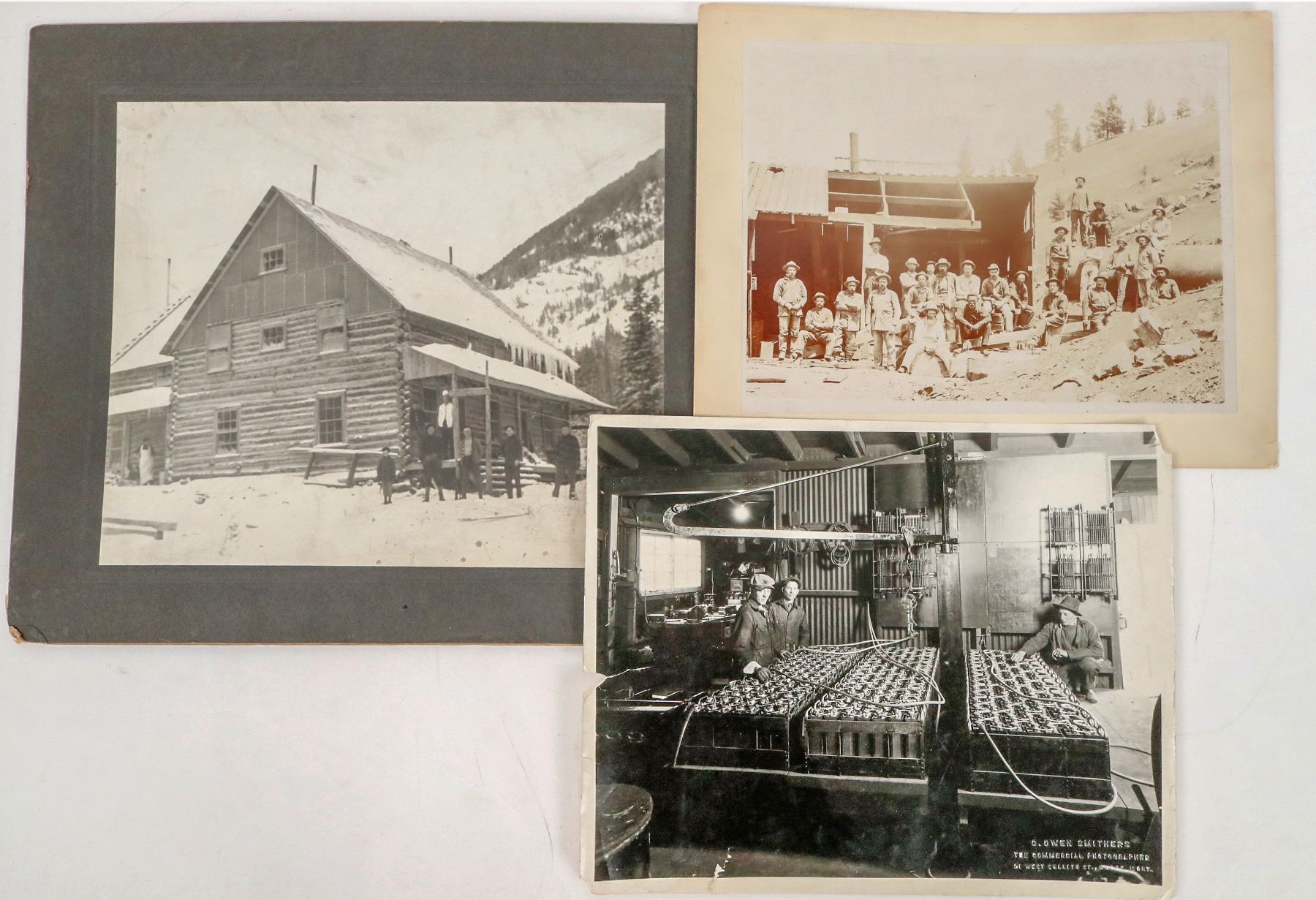 3 Butte photos. Early battery banks by C Owen Smithers, 8x10", small chips and tears. Miners, 6.5x8.5", low contrast. In the snow near a log building, 8x9.5", some light smudges.