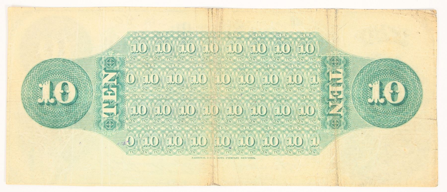 Extremely rare. Ex. John J. Ford Collection. Ten dollar note issued Oct. 1st, 1871. Signed by the superintendent. Located in New York Canyon near Eureka, the Butter Cup mine was a real producer beginning in 1867. By the 1870s silver and gold coins were scarce and had to be shipped in weekly to meet pay role. The Butter Cup management decided to issue this scrip to reduce the volume of coins every week. Not only was this illegal but the miners refused to accept anything but gold and silver for their wages. These notes, printed by the National Bank Note Co., are very seldom encountered and then almost always as unissued remainders. This issued $10 note features detailed engravings of a frontiersman and a bridled horse head. This is an extremely rare obsolete note. 3 x 7"