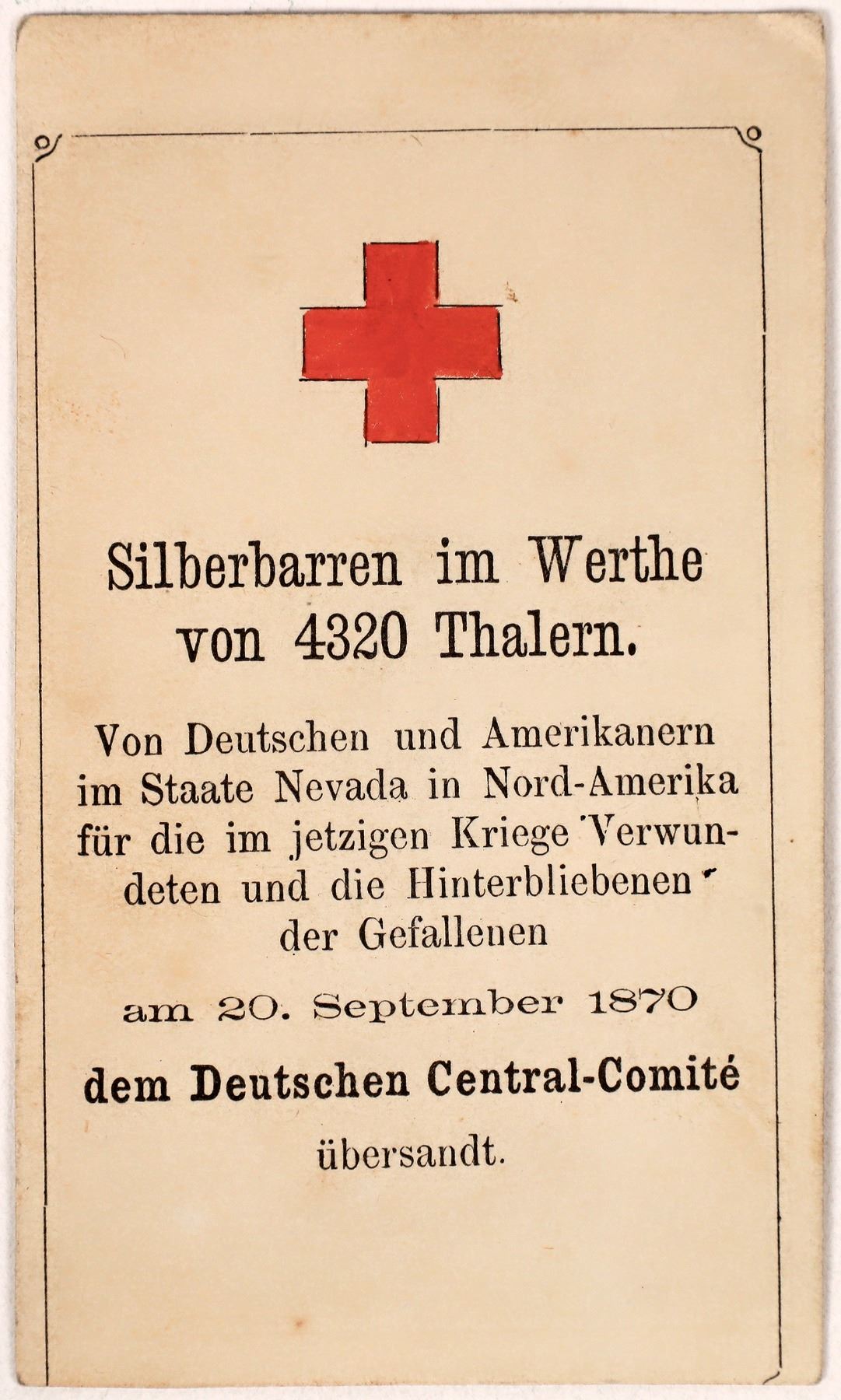 From Germans and Americans in the state of Nevada in North America for the wounded in the current war and the relatives of the fallen