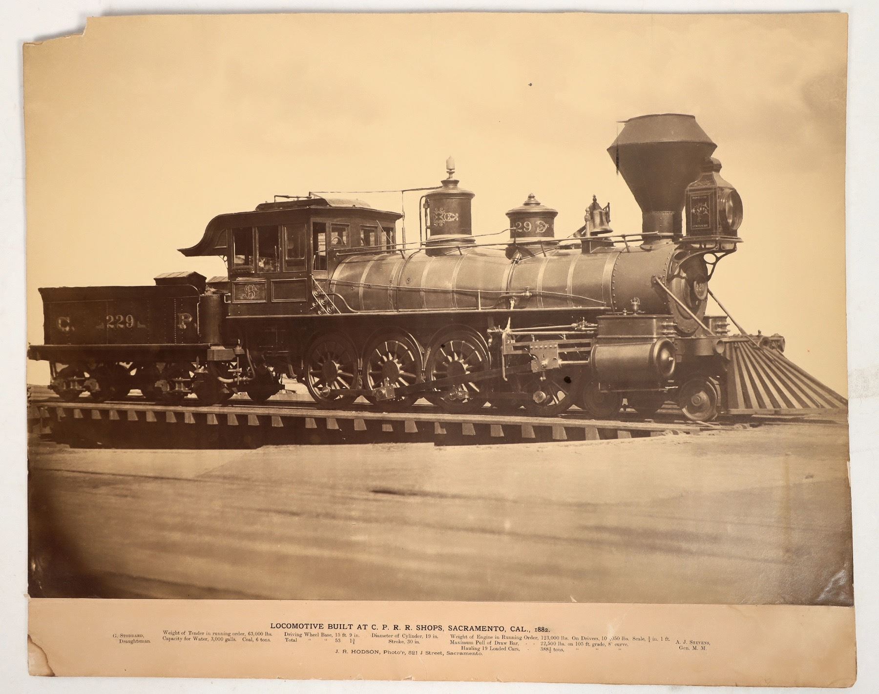 Exceptional Photograph. CPRR Mammoth Plate Photo of Engine 229, a 4-8-0 locomotive as Completed at Sacto RR Shops, 1882. Mounted on cardboard.