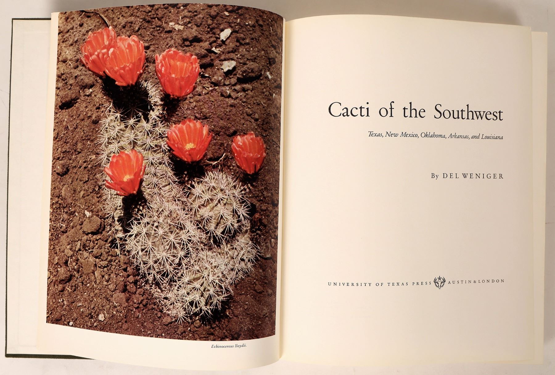 "Cacti of the Southwest - Texas, New Mexico, Oklahoma, Arkansas, and Louisiana," Del Weniger, 1970. 64 pages of color photographs, 242 pp. total. 9.5" x 12". Fine.