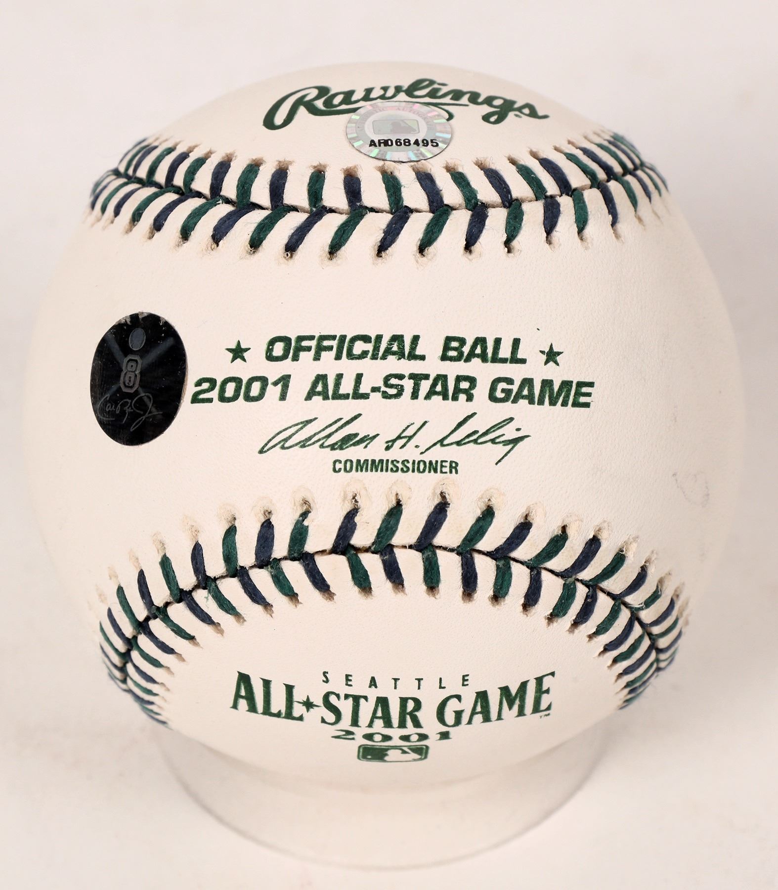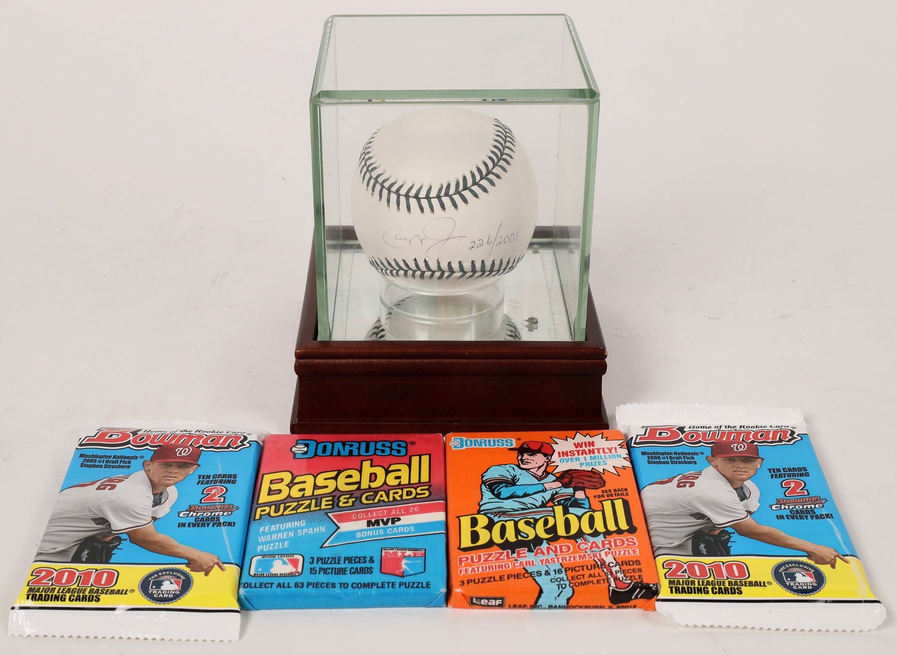Cal Ripken Jr. 2001 All Star Game autographed Rawlings ball, #226/2001. No COA. 4 unopened packs of baseball cards-Bowman 2010 and Donruss 1989 and 90. 2001