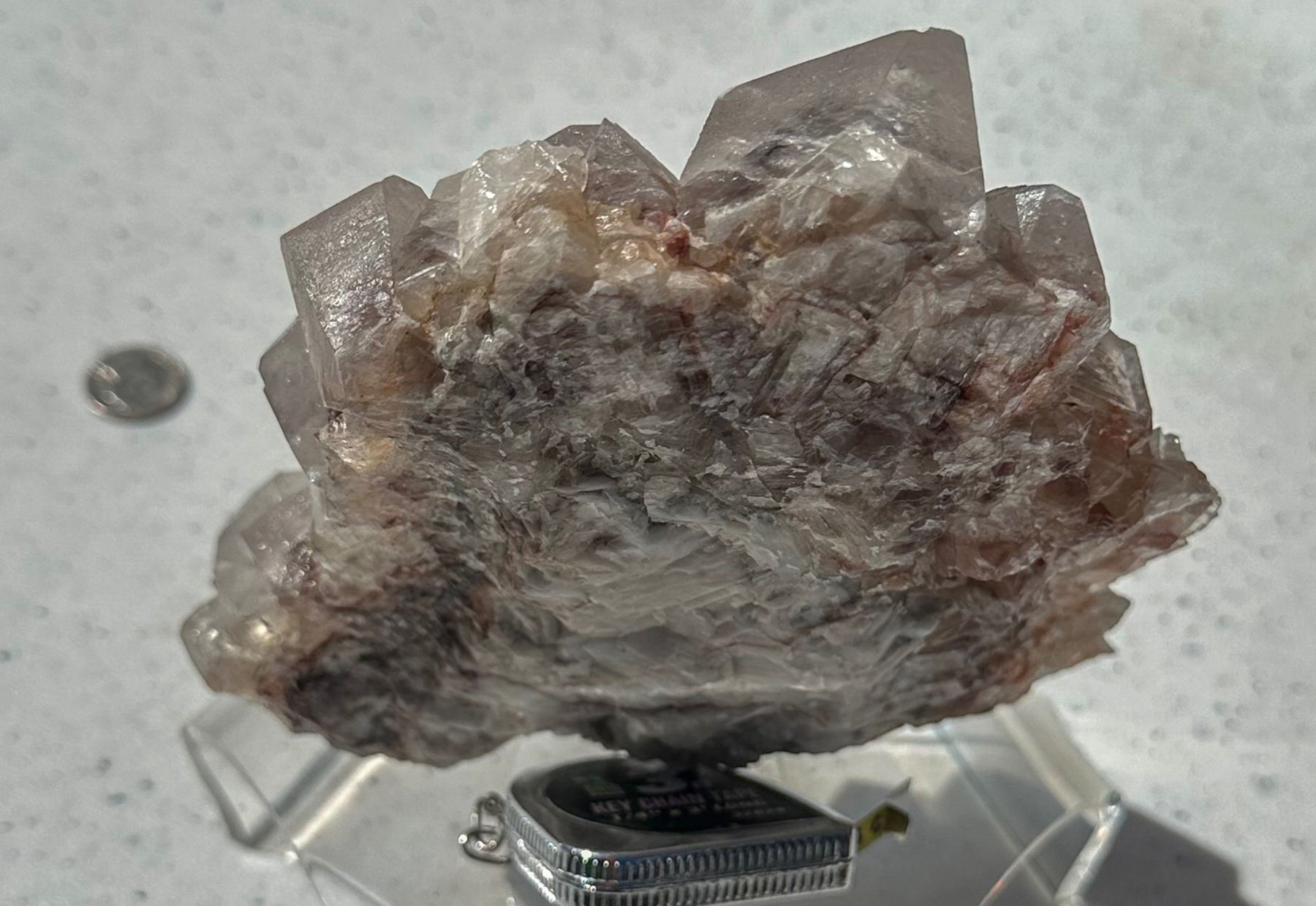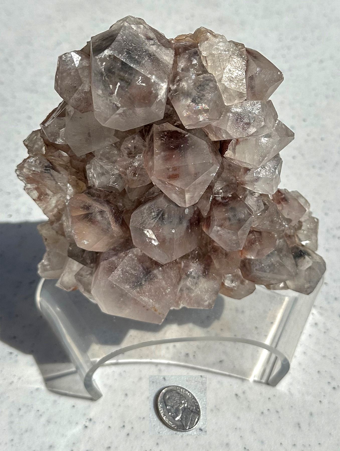Beautiful cluster of clear, pinkish-brown, hobnail calcite specimen with crystals approximately an inch across each. A striking display piece worthy of featuring on your desk or your special bookshelf. From Guangxi Province of China China Guangxi Province Chunlin Zhu Collection