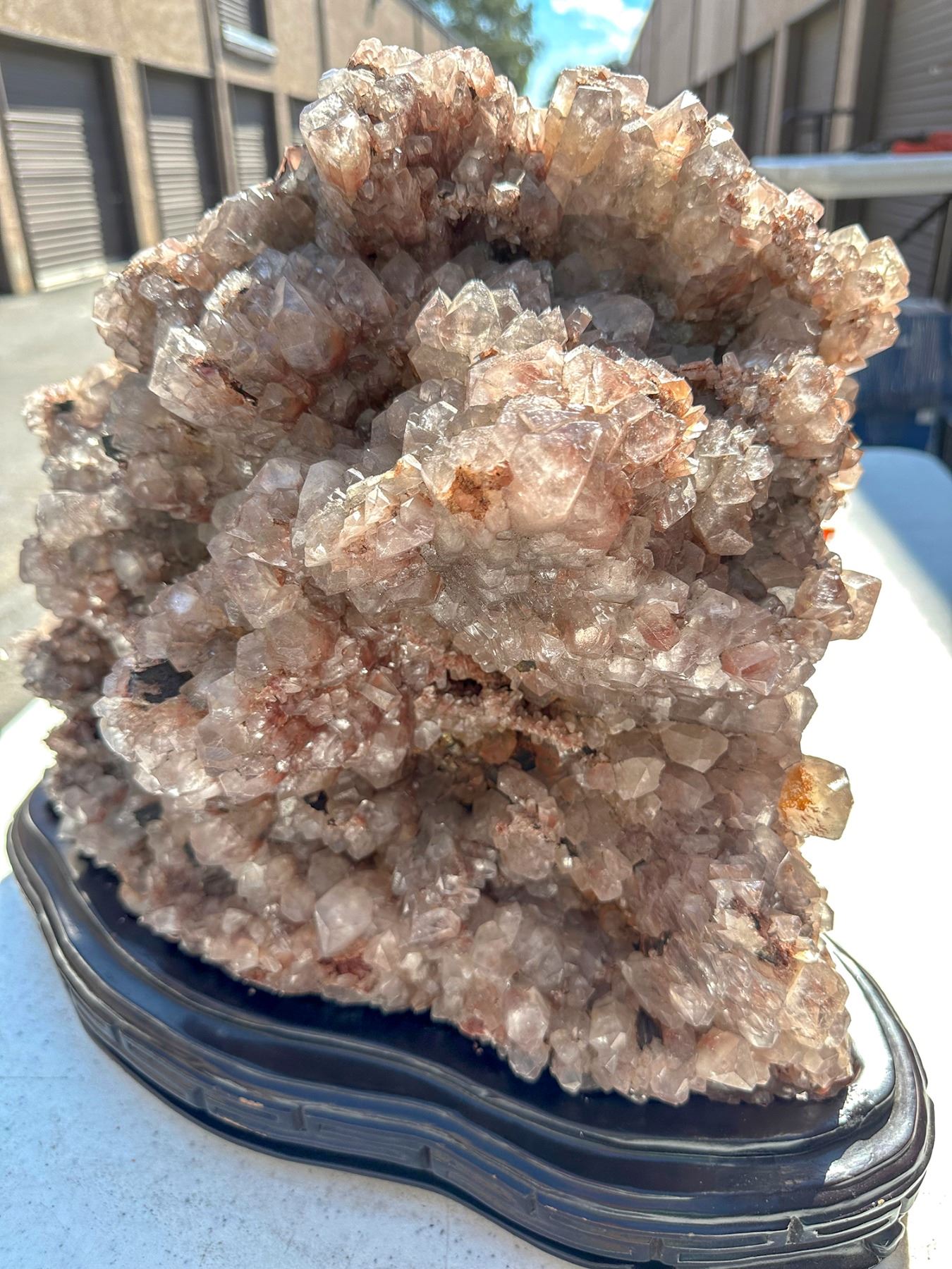 Large pink calcite crystal mass 12 x 16 x 10” base China Chunlin Zhu Collection