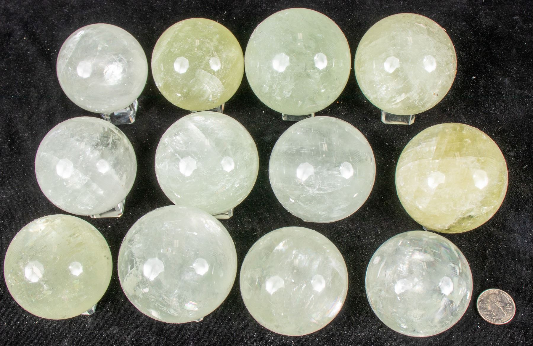 Polished spheres clear to pale yellow, 2 - 2.5" in diameter State: City: Date: Provenance: Chunlin Zhu Collection