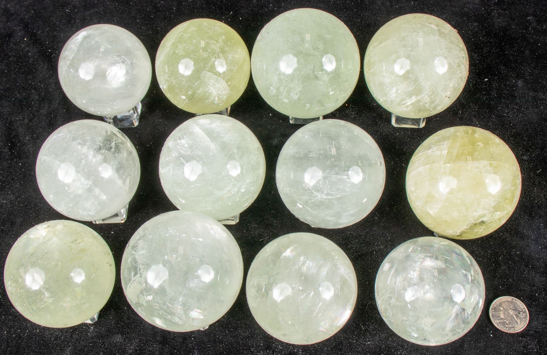 Polished spheres clear to pale yellow, 2 - 2.5" in diameter China Chunlin Zhu Collection
