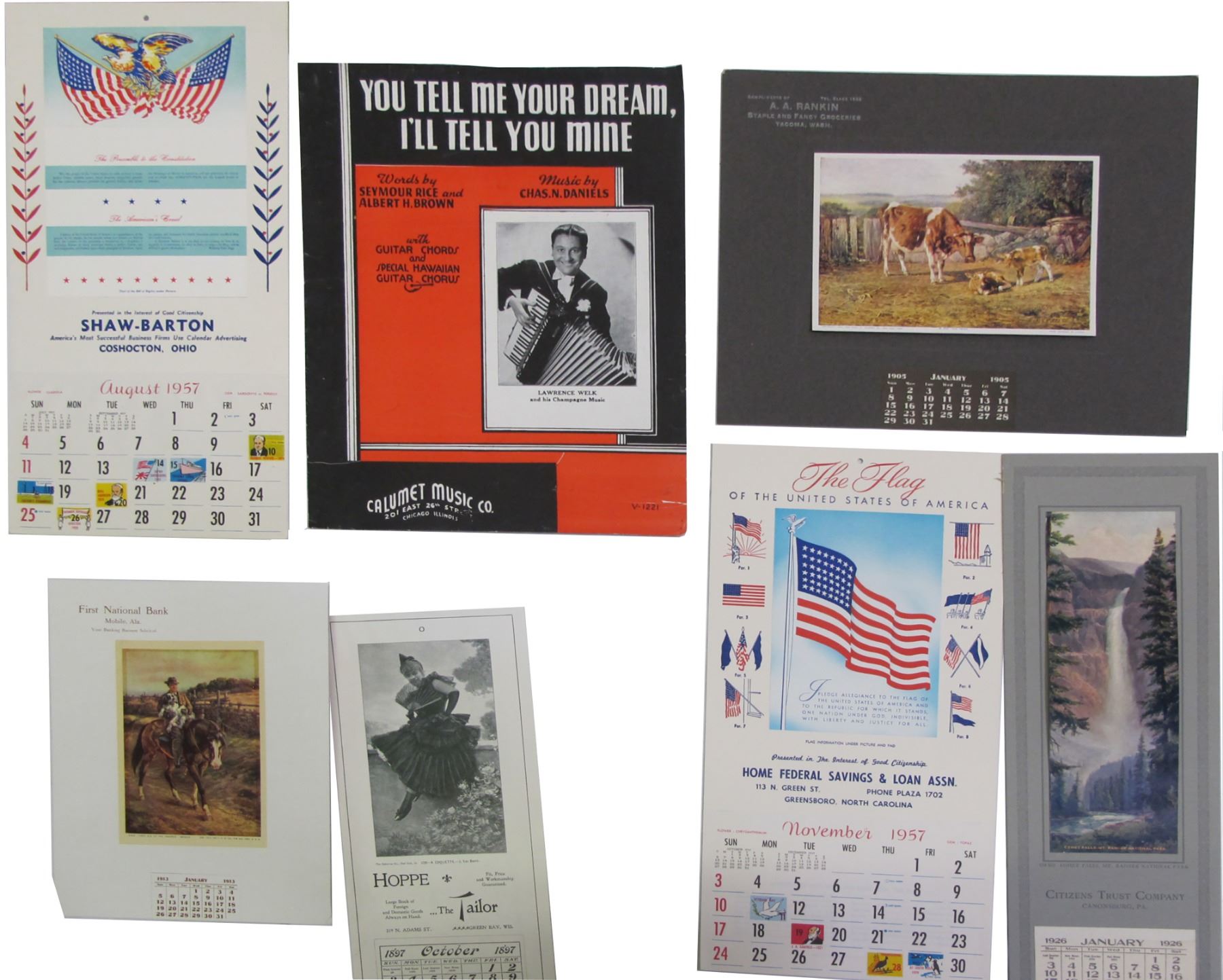 Approx. 6 in this lot. Art of animals, landscapes, 1 sheet music, "You Tell Me Your Dream, I'll Tell you Mine". State: Wisconsin City: Green Bay Date: mid-29th Century HWAC# 84442