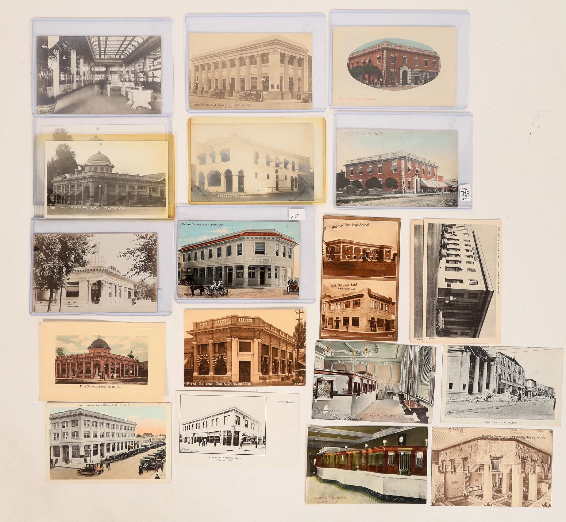 20 mostly different California bank postcards. This lot is perfect for California currency collectors. Santa Monica, El Centro, Lindsay, Porterville, Antioch, Tulare, Anaheim, Oxnard, Riverside, Redlands, Los Angeles etc.[ California