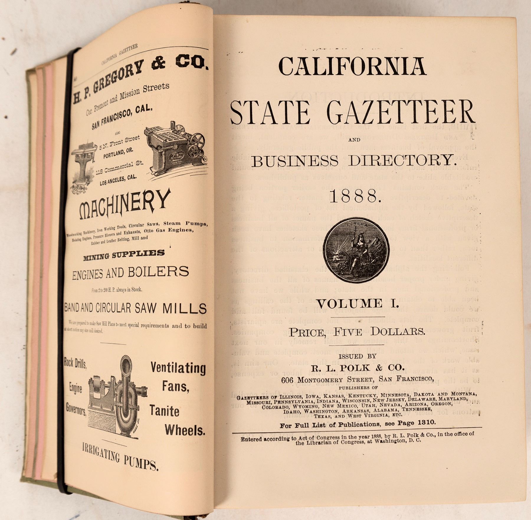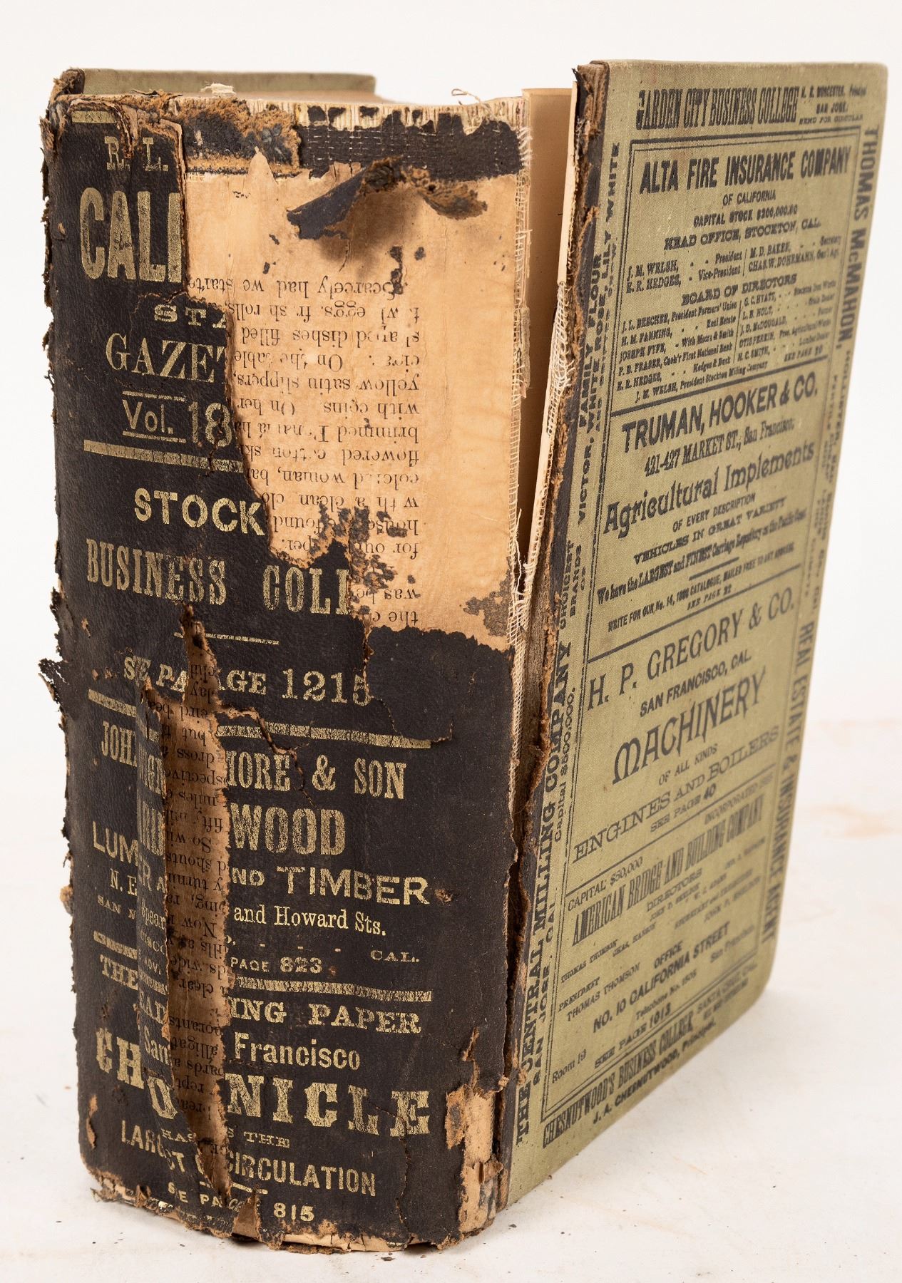 Scarce 1888 California Gazetteer & Business Directory. 1794pp. Nicholls Estate of Dutch Flat provenance. Front board detaching, spine partially intact, please inspect. California 1888