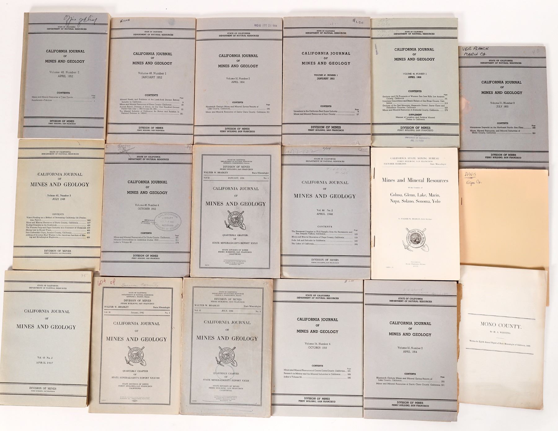 17 California geology references by county. Mono 1888, Santa Clara 1954, Contra Costa 1958, Calaveras 1936, Sierra 1942, Stanislas 1947, San Luis Obispo 1947, Placer 1936, Napa 1948, Del Norte 1952, Butte 1949, Alameda 1950, Inyo 1951, Glenn 1952, Yuba 1957. All 1915-Colusa, Glenn, Lake, Marin, Napa, Solano, Sonoma Yolo. California