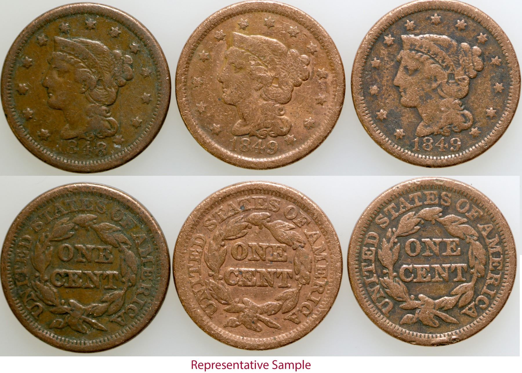 Lot of 21 large cents: 8 - 1847; `11 - 1848; 2 - 1849.