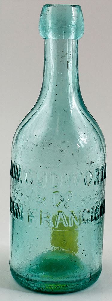 A. W. Cudworth / & Co / San Francisco ( No Cal ) 1870's...Pale aqua, smooth base. Minor flaking on two letters , as well as a 1/16" open bubble on the left shoulder. Also, a minute hard to find, polished out, inside lip flake, 1/16" in top. Minor wear, otherwise pretty good. Date: Location: San Francisco, California HWAC# 30131