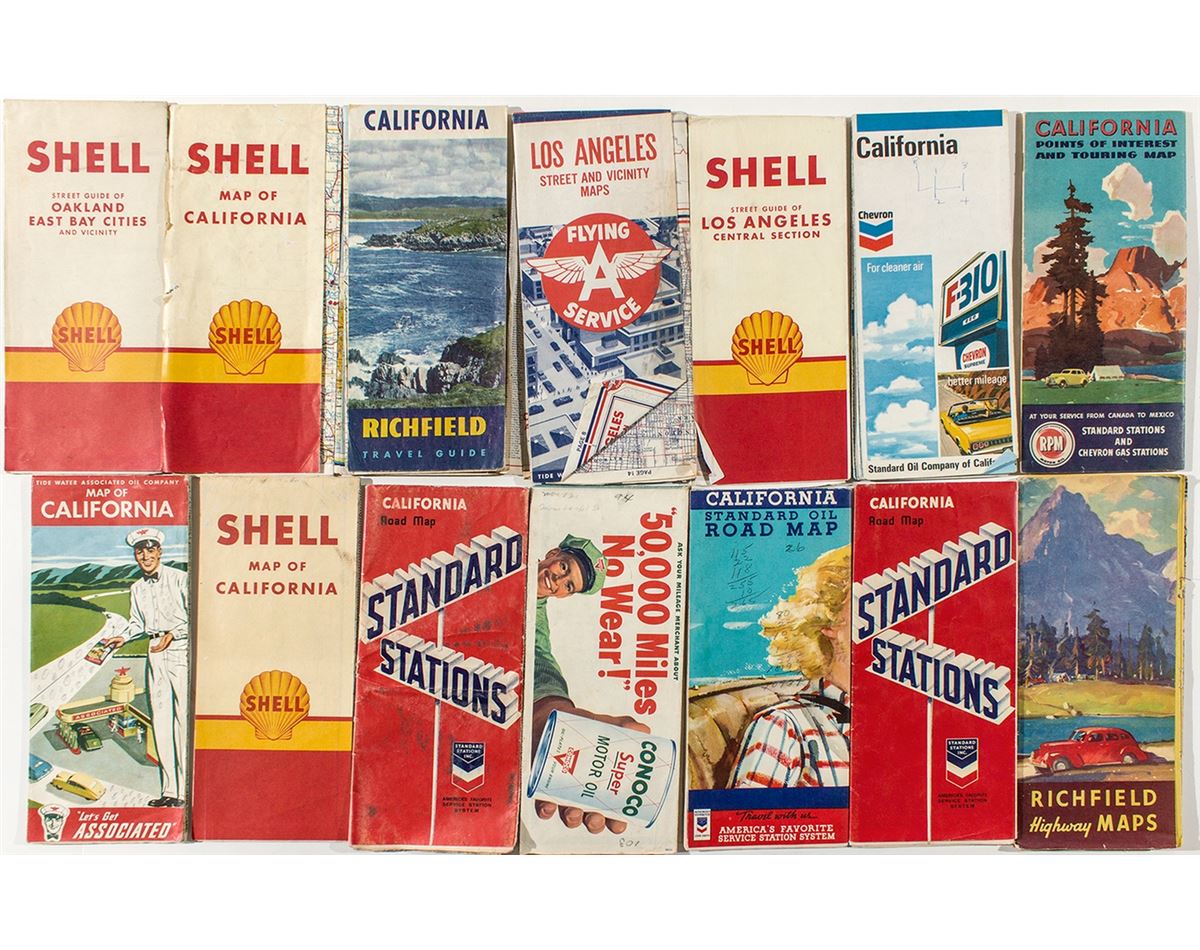 14 folded maps by various oil companies: Chevron, Shell, Flying A, Richfield, Standard, Conoco, etc.