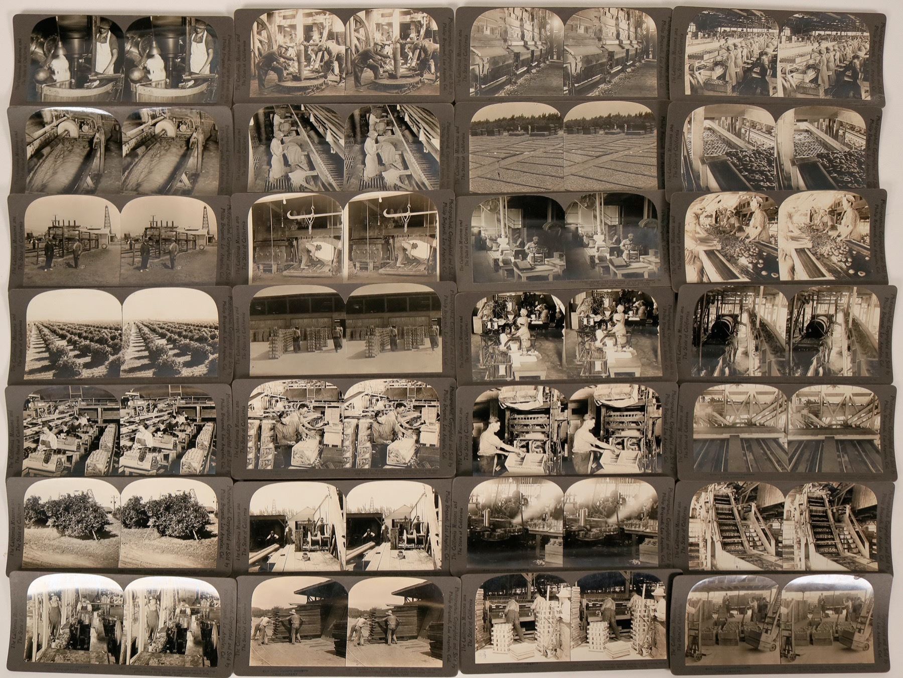 These are 28 rare stereo views depicting industry on the Central Coast of California. Photos include orchards, canneries and other food processing scenes. All the photos are in new conditions and ready to view.