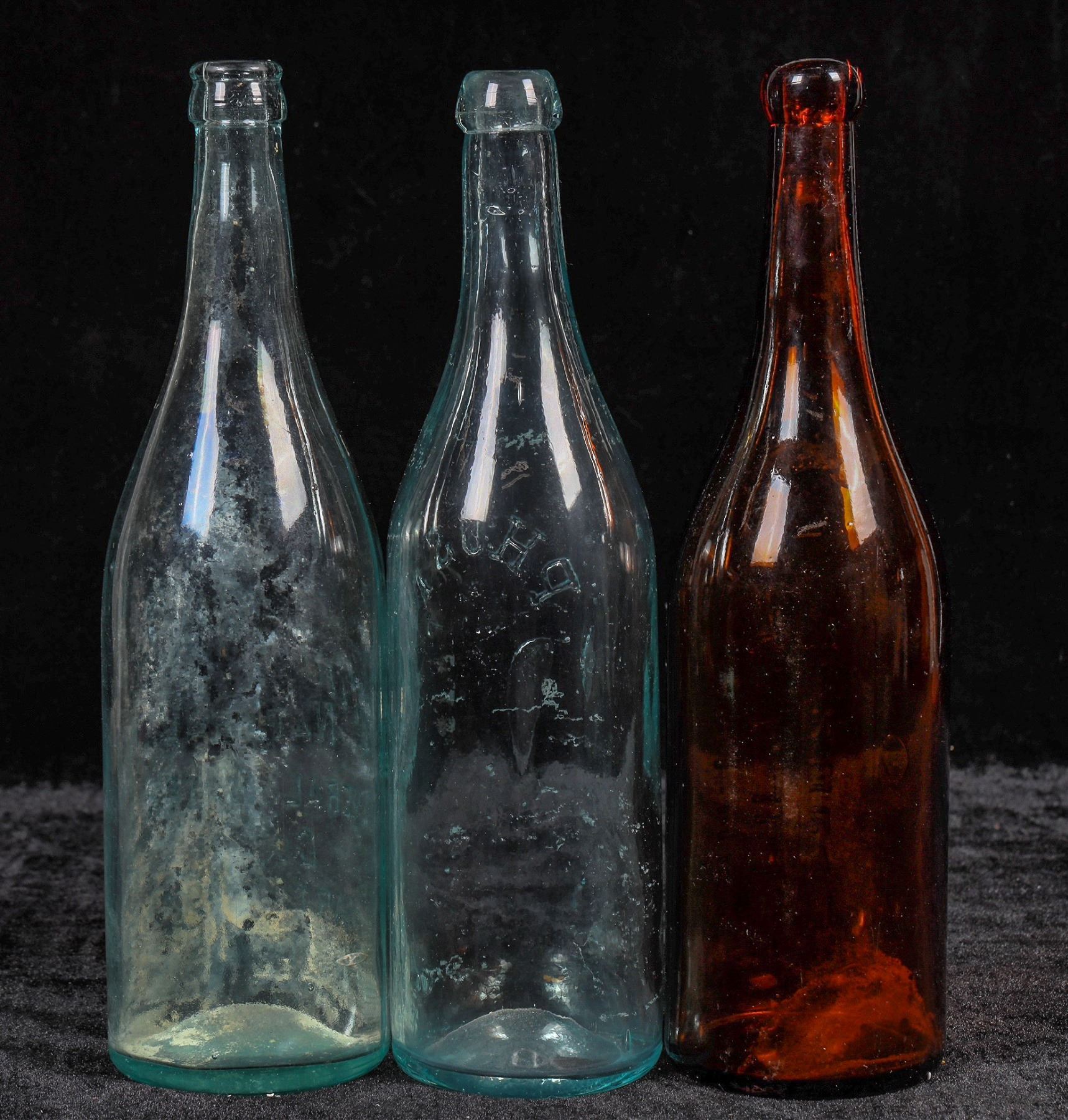 3 quart California mineral water bottles with rarities. Light aqua, Phosa, Alhambra/Martinez. Amber Allen. No apparent chips or cracks.