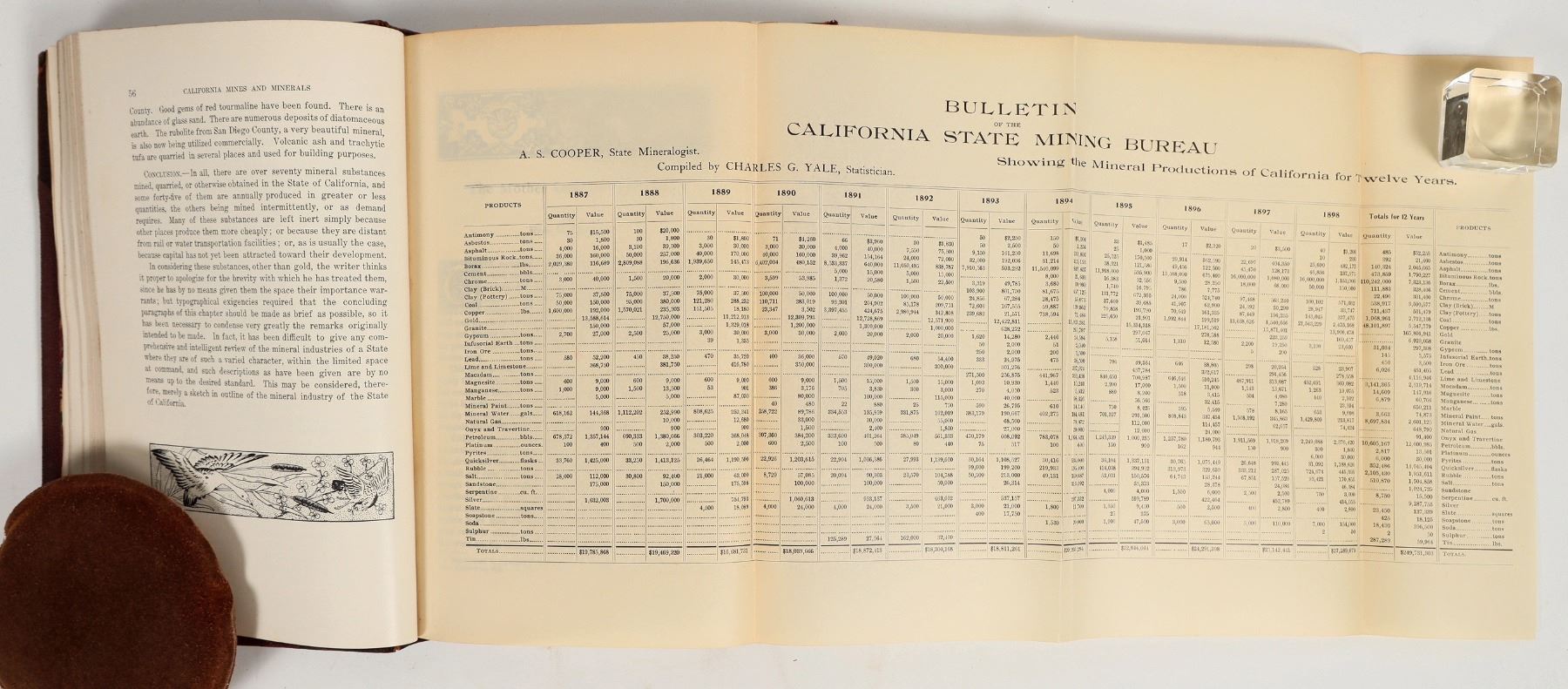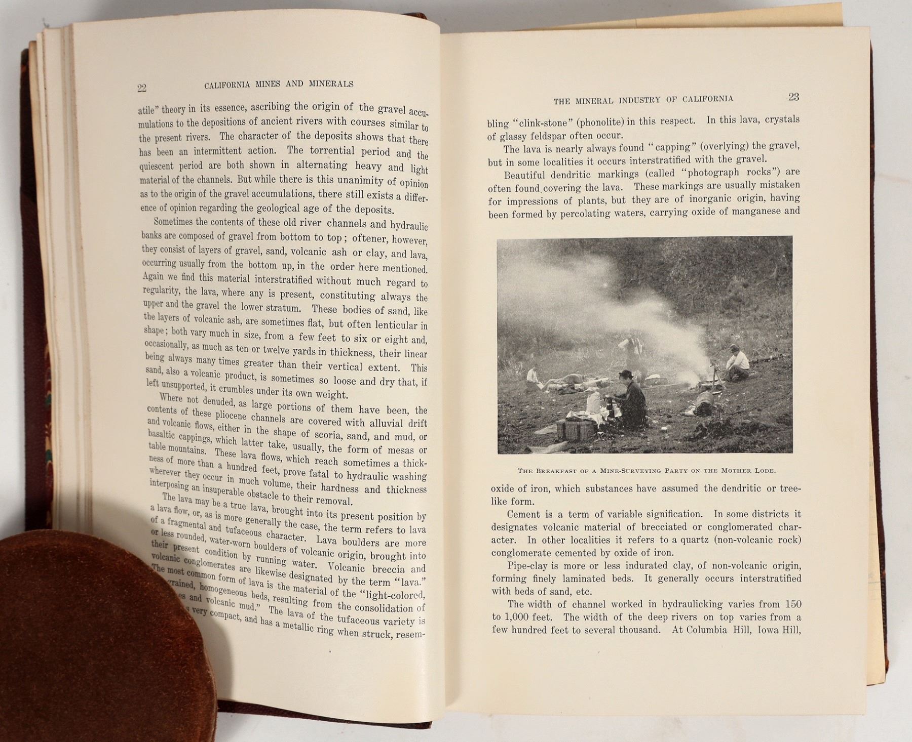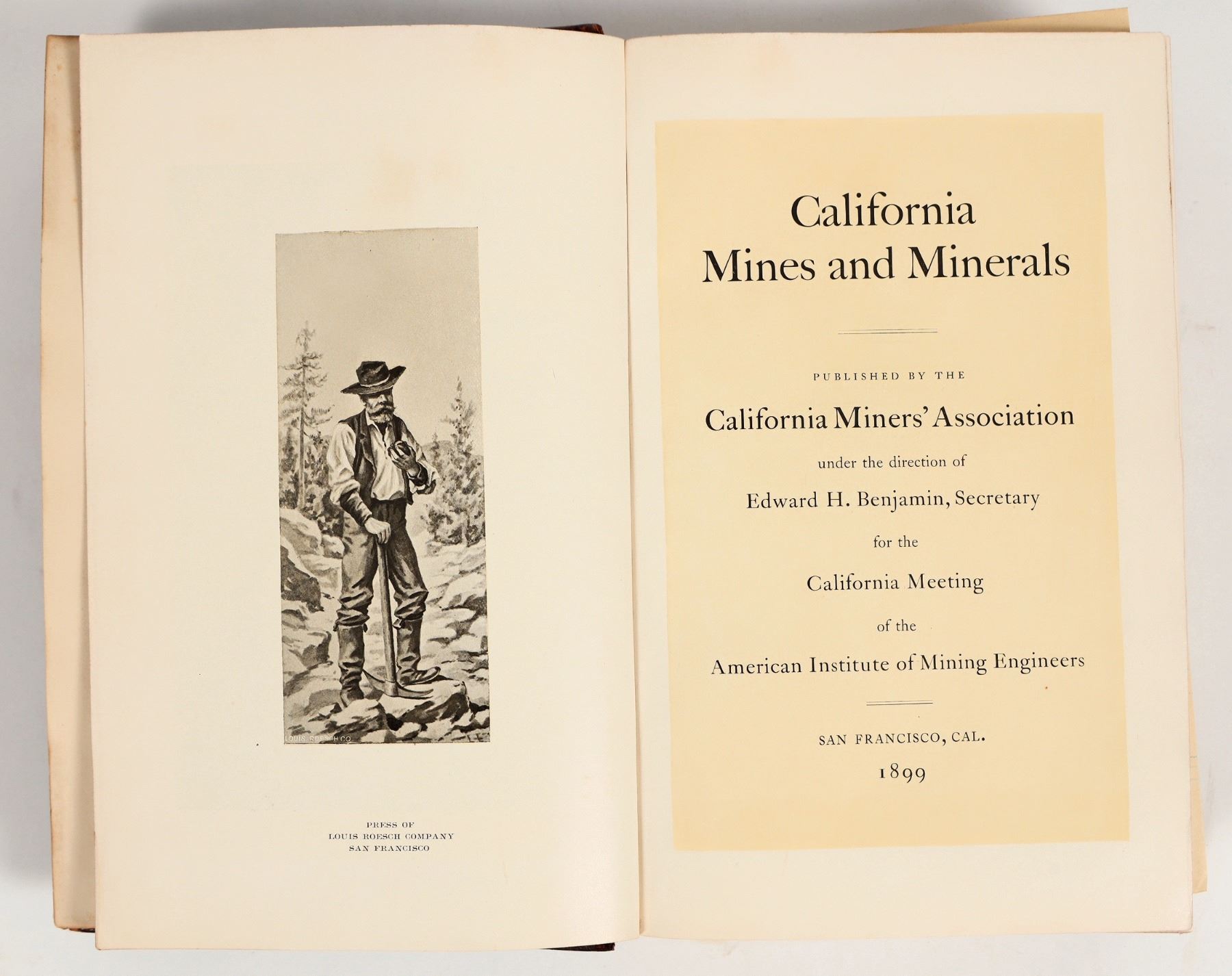 Published under the direction of Edward H. Benjamin, secretary, for the California Meeting of the American Institute of Mining Engineers, San Francisco, 1899. 450pp. with index, plus 48 pages of advertisements for all the prominent Western mining machinery and supply firms! Photos of mines, a fold-out geologic map of the Mother Lode, fold-out mining map of Tuolumne County, and much more! Very good condition. 9 x 6"