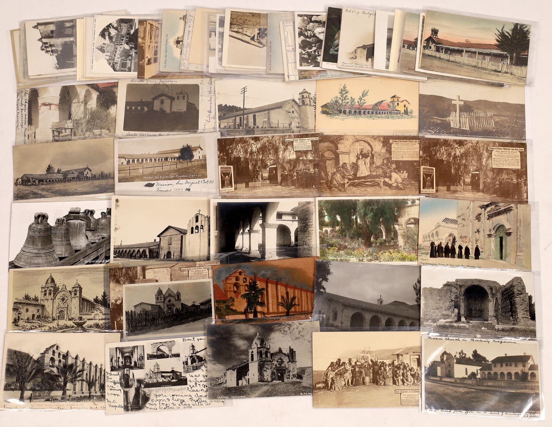Lot of over 50 vintage postcards from California Missions. A ticket to enter Mission San Juan Capistrano, some individual playing cards from Southern Pacific. Some real photos, some artistic renditions. State:California City: Date: Provenance: Ken Prag Collection