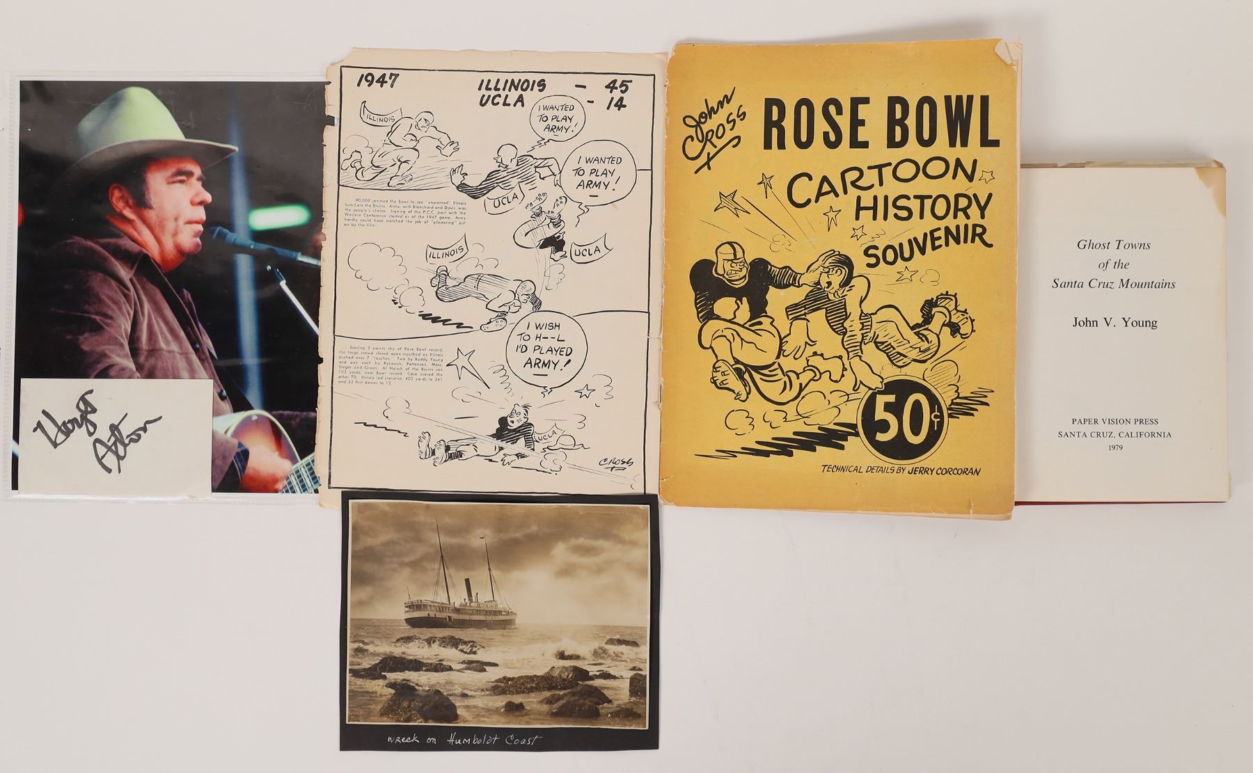 Includes autograph cut of Hoyt Axton, 6"x 8" photo of a shipwreck, a book entitled Ghost Towns of the Santa Cruz Mountains and a Rose Bowl Souvenir cartoon book (damaged). Please see photos for more details. California Santa Cruz 1948