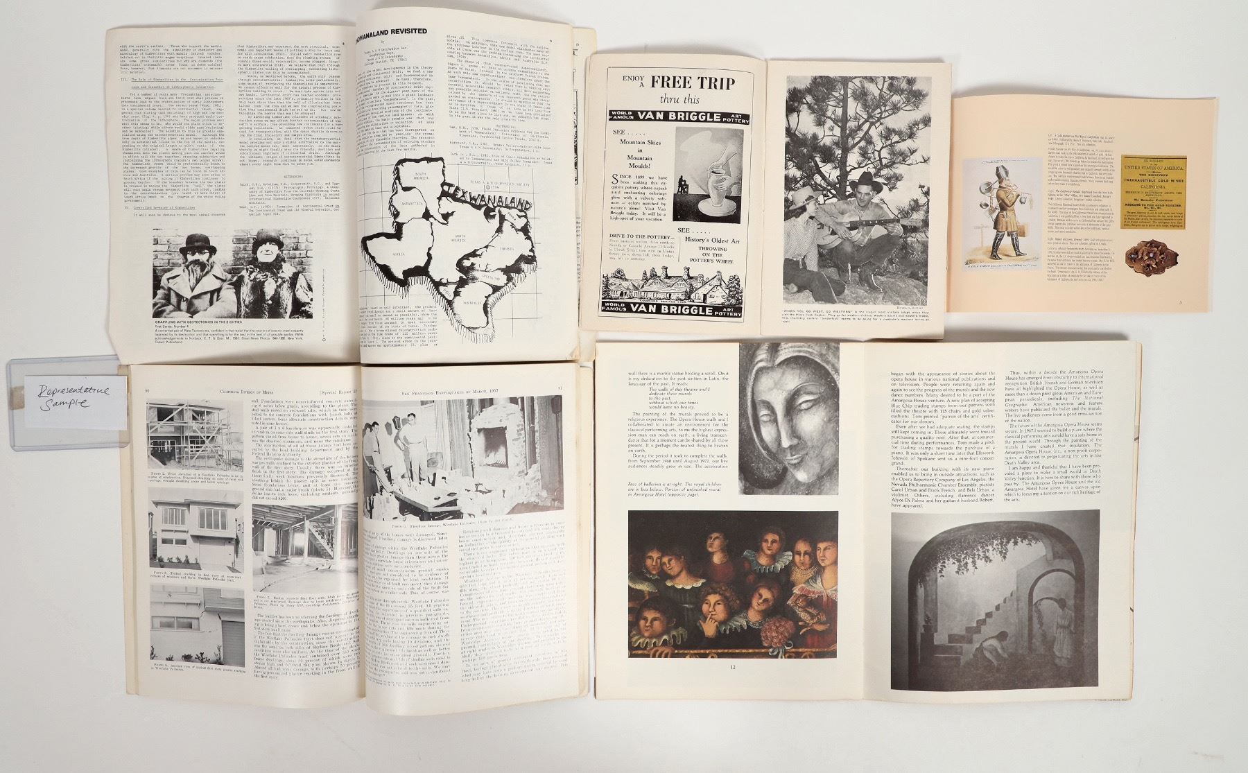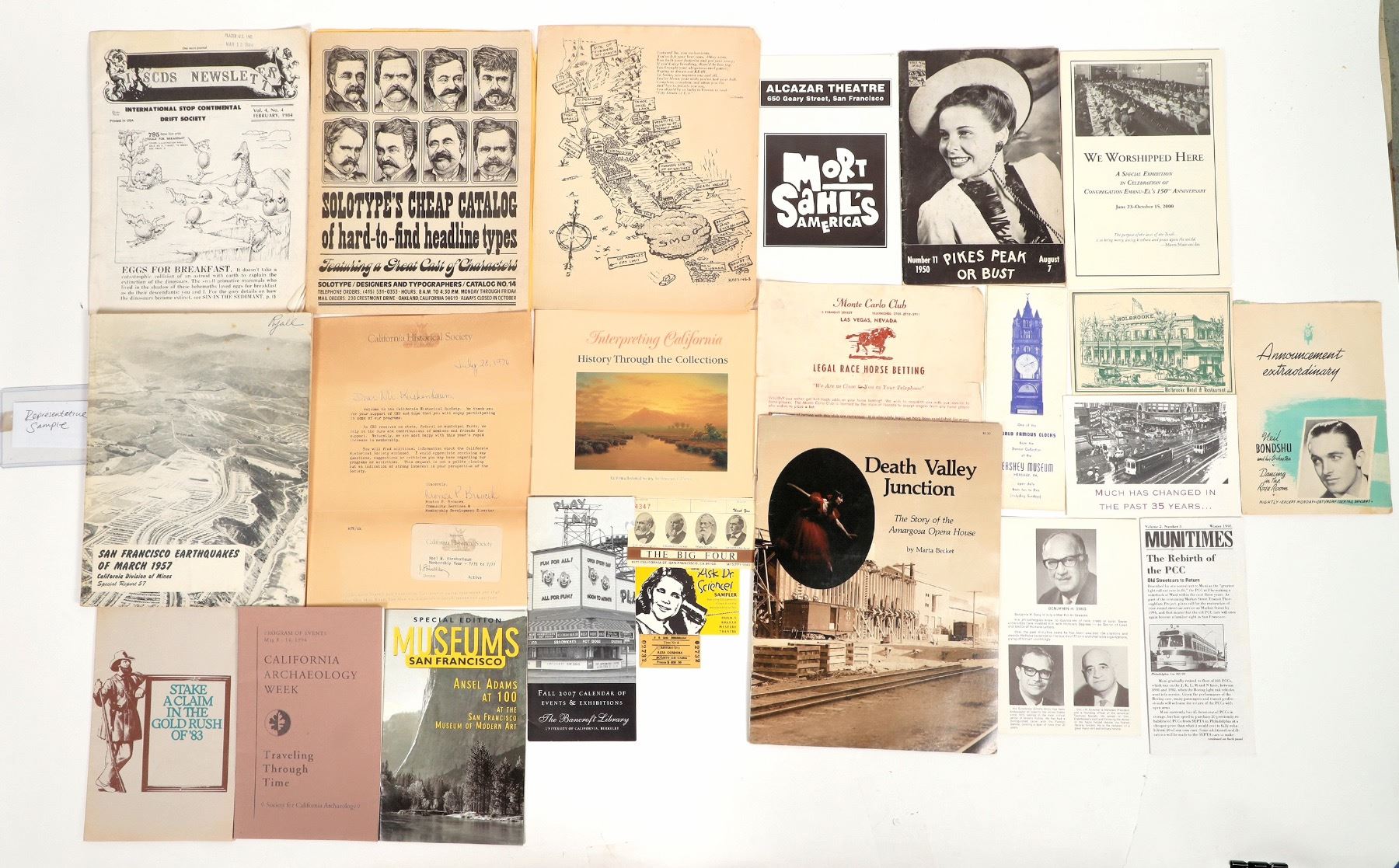 A collection of ephemera from California and Nevada. including a 1957 report on earthquakes in the San Francisco Bay Area, a brochure about the Amargosa Opera House in Death Valley Junction and more. All are in decent condition. Please see photos for more details.